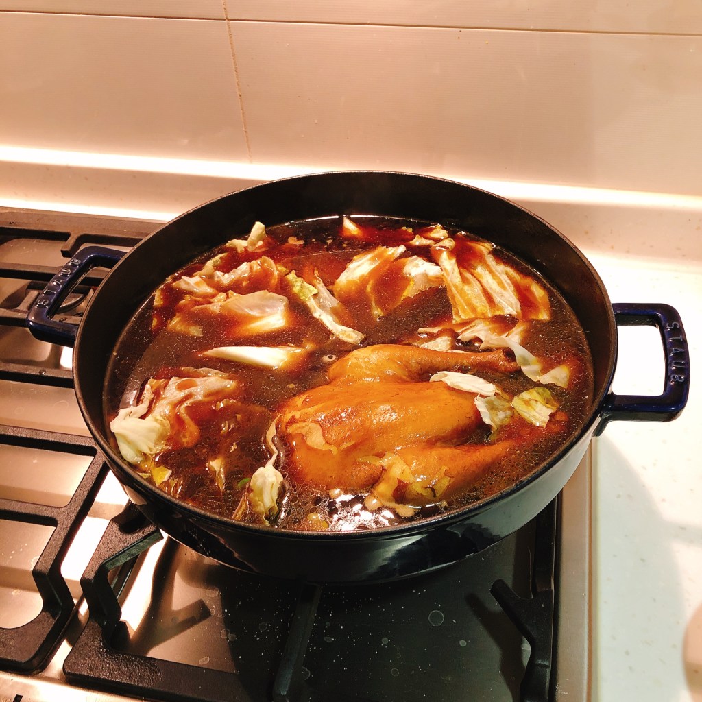 #2鑄鐵鍋加入首烏雞藥材包煨煮30分鐘