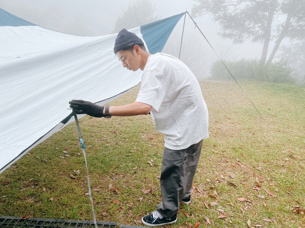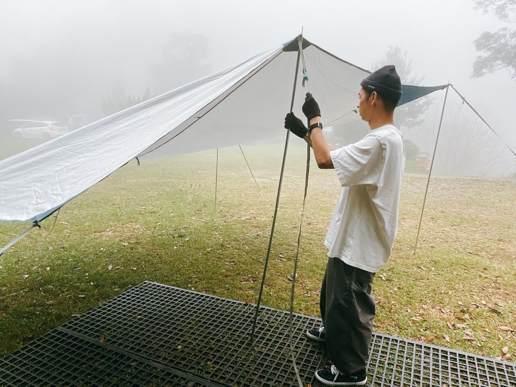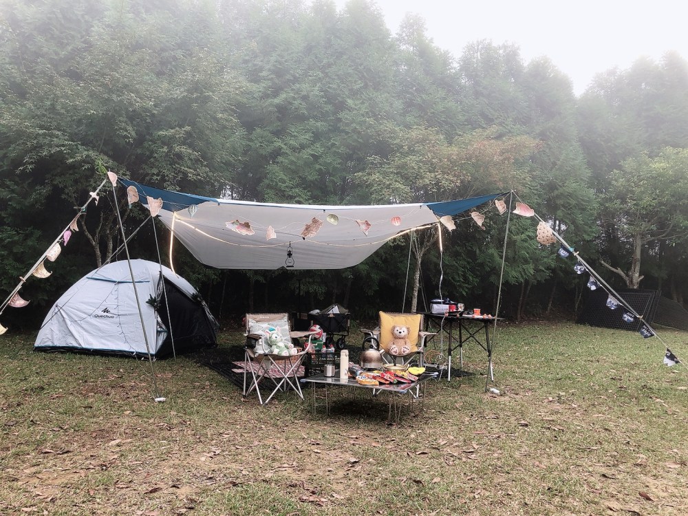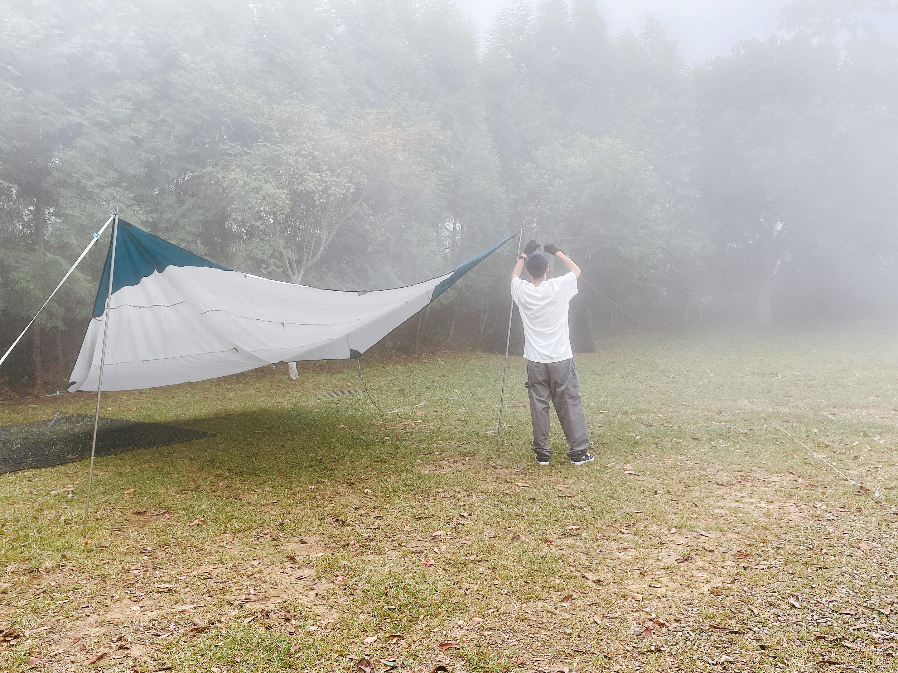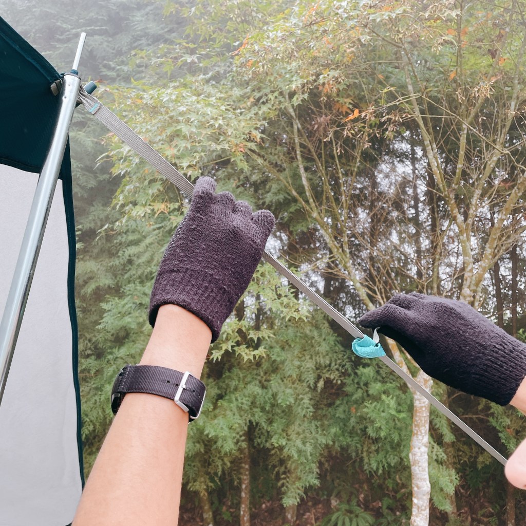 接下來可以微調天幕角度(挪動營柱和營繩長短)變成心目中理想的樣子。