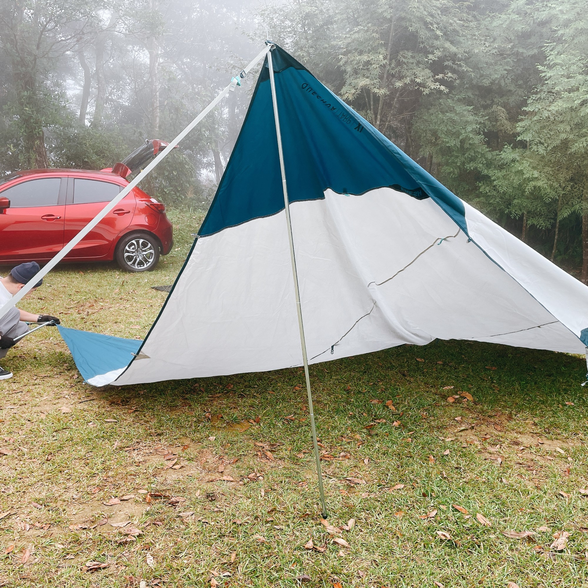 2021年春天迪卡儂新品【QUECHUA FRESH加大版天幕】,就是靠「全圖示、無使用說明書」讓工程師性格的半獸人先生在山中搭天幕搭到沮喪崩潰(還歪歪的)。