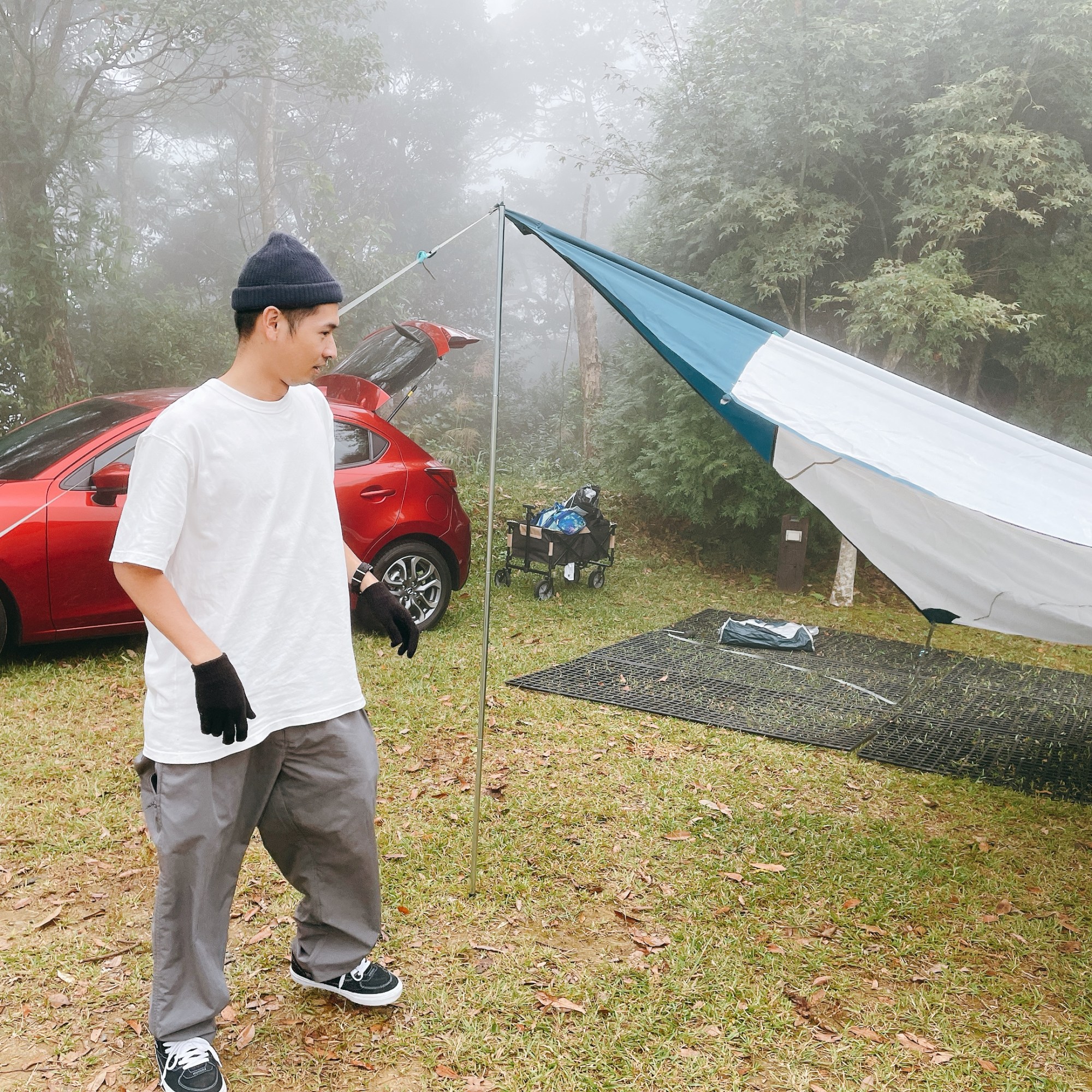 天幕可部分包覆保護睡帳,米飛今年春季露營就是靠天幕挺過尖石山區霸王級寒流和大雨!