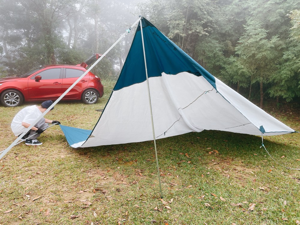 倘若氣候不佳,迪卡儂這款QUECHUA FRESH加大版天幕亦提供陽春版遮雨功能。天幕可部分包覆保護睡帳,米飛今年春季露營就是靠天幕挺過尖石山區霸王級寒流和大雨!