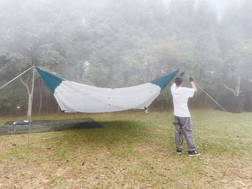 接下來可以微調天幕角度(挪動營柱和營繩長短)變成心目中理想的樣子。