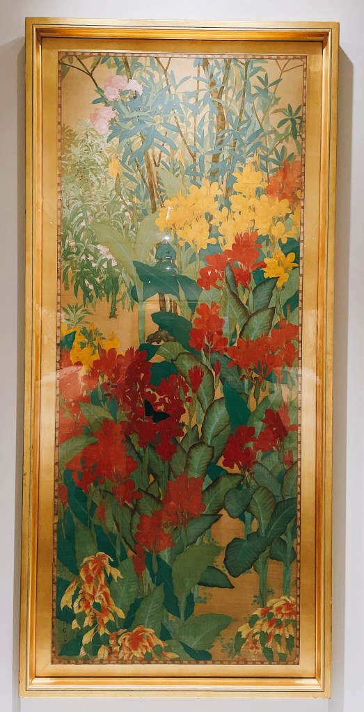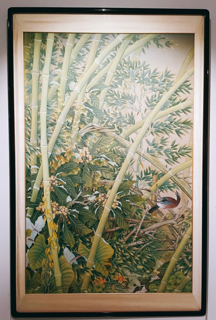 這是一幅非常巨大的作品。木下細膩處理植物葉片紋理細節與疊色,紅色、橘色、黃色,南國炙熱的夏天才剛開始喔!