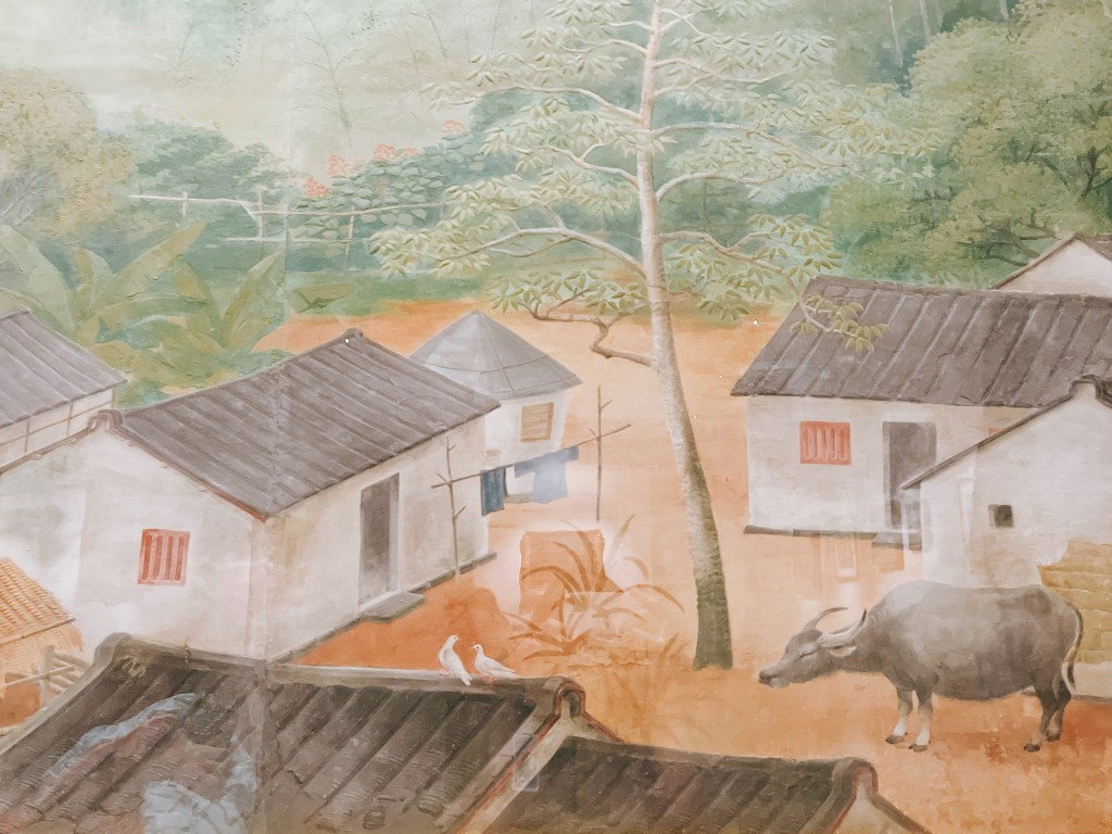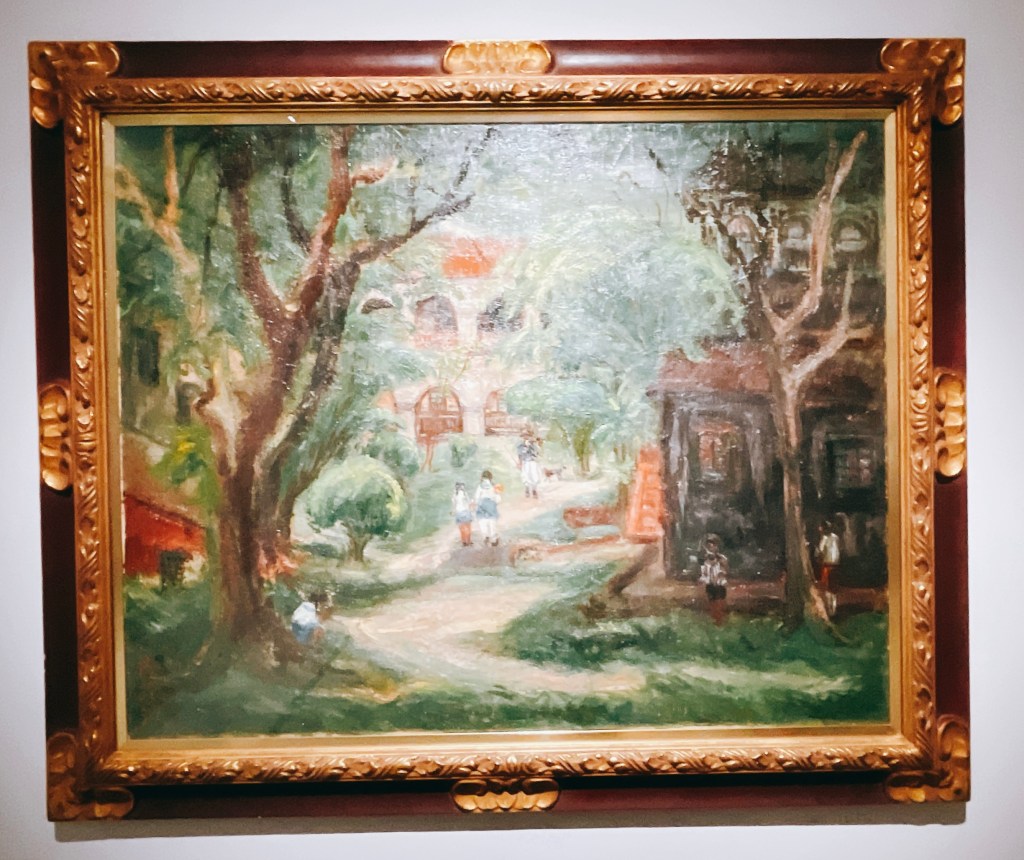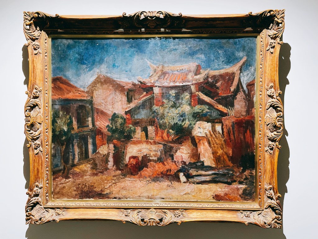 整個展覽廳最突兀的畫面莫過於穿插在各種台灣特色(廟宇/ 水果/ 水牛)中的這幅歐風畫作。定睛一看,竟是顏水龍早期留法參加沙龍的作品!