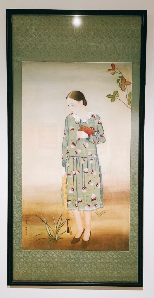女生也要受新式教育、經濟獨立,但閨房之中如果畫家是把妻子作為模特兒,還是會很沙文的側畫營造閨中的含蓄。