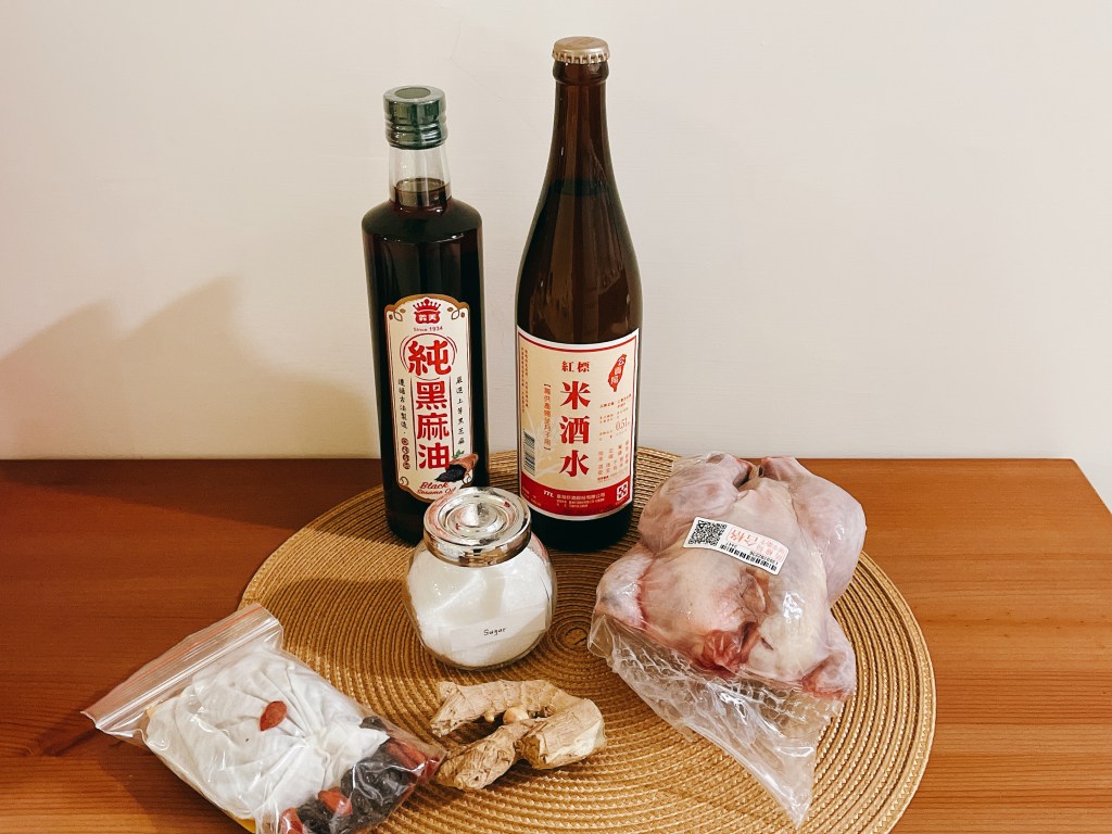 麻油、老薑、砂糖炒到香味四溢,鑄鐵鍋內一隻雞正泡著藥酒浴。