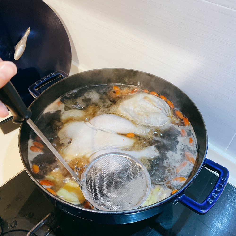 冒泡後,用濾網撈掉浮泡和殘渣,就可蓋上鍋蓋以小火悶煮30分鐘。