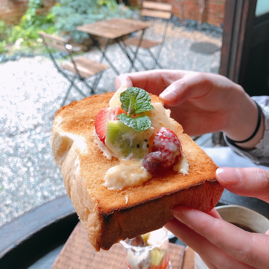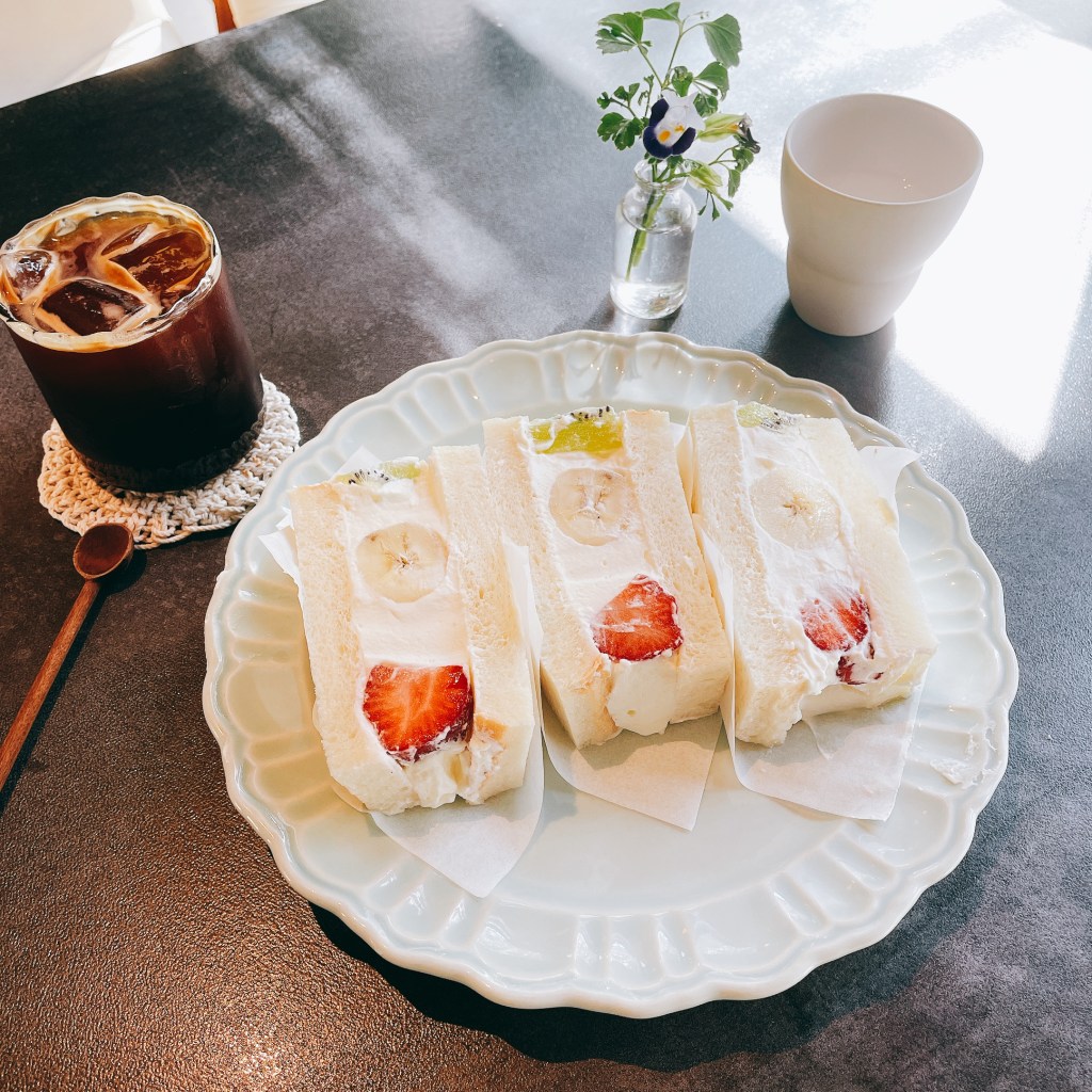 當時恰好為台灣冬日限定的草莓季,因此水果為對切草莓(整顆)、香蕉及奇異果。鮮奶油沒有假奶味、夾著鬆軟的吐司與水果,酸酸甜甜滑順入口,堪稱新竹水果三明治佼佼者!