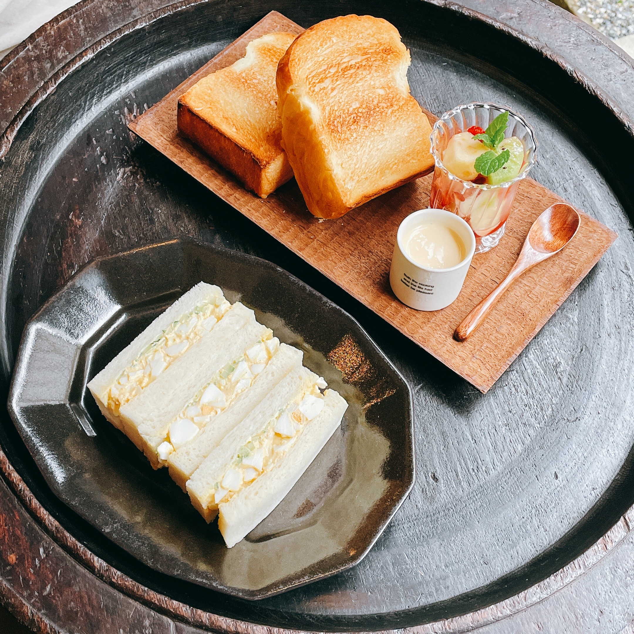 店內主打山形吐司、生吐司以及日式三明治。室外庭院參觀免費無料,入內低消為每人一份飲品。