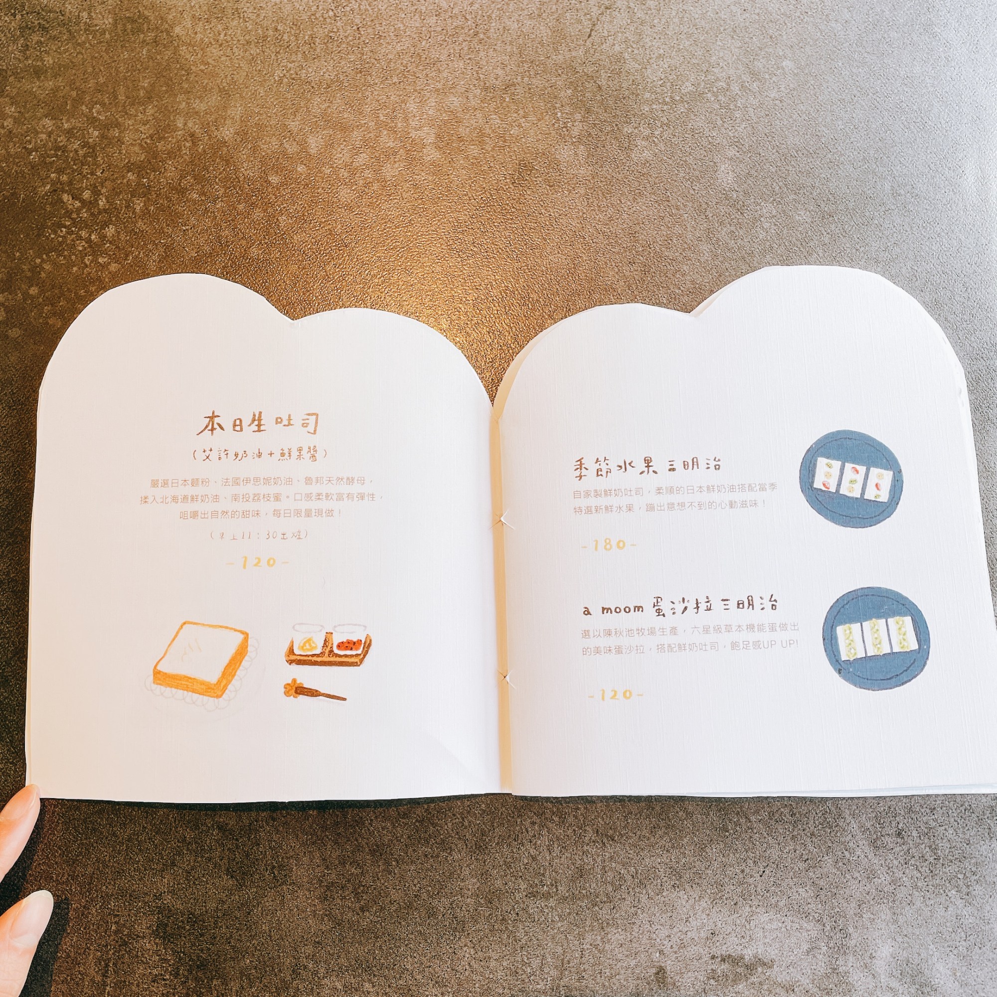 看菜單時米飛一直糾結究竟要點「本日生吐司」還是招牌「微熱山形生吐司」,最後,終於被山形生吐司可愛的插畫示意圖誘惑,選擇山形吐司。