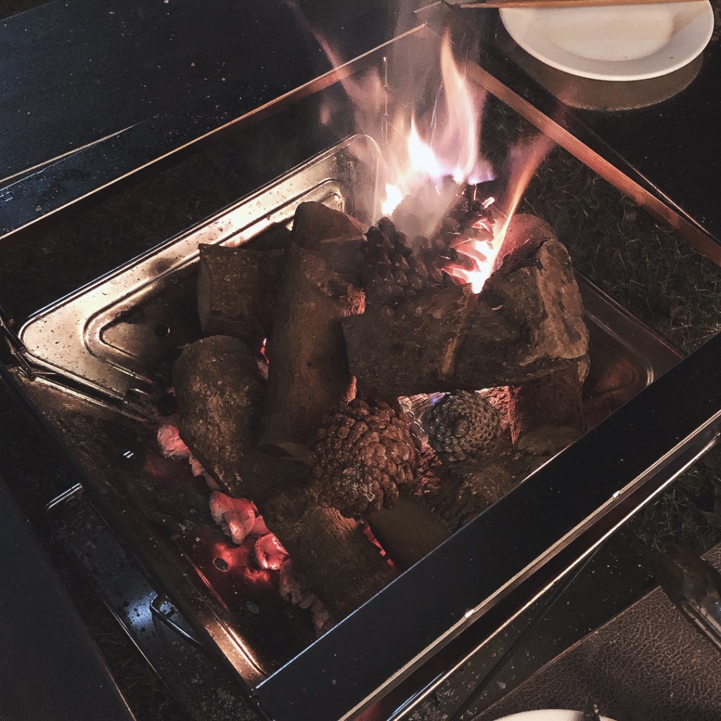 霹哩、啪拉,暖暖的火花燒著木柴,療癒的ASMR搭配龍眼木特有的香氣,取暖之際還能直火烤肉!