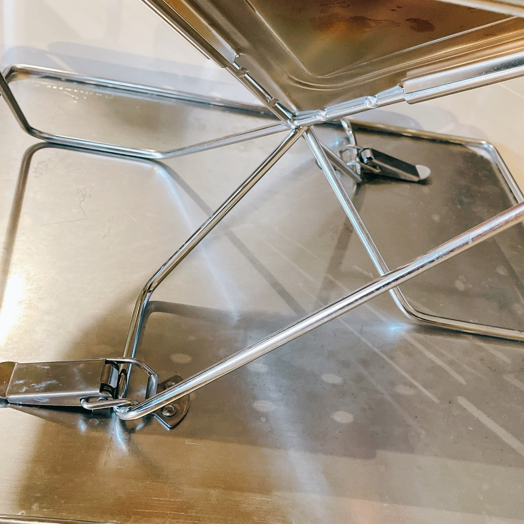 不鏽鋼框架連結可動式關節,可選擇3種高度調節火力。通常米飛習慣將框架架在最下面的刻度(離火焰最遠),以免火太旺烤肉或炒菜時輻射熱過高。