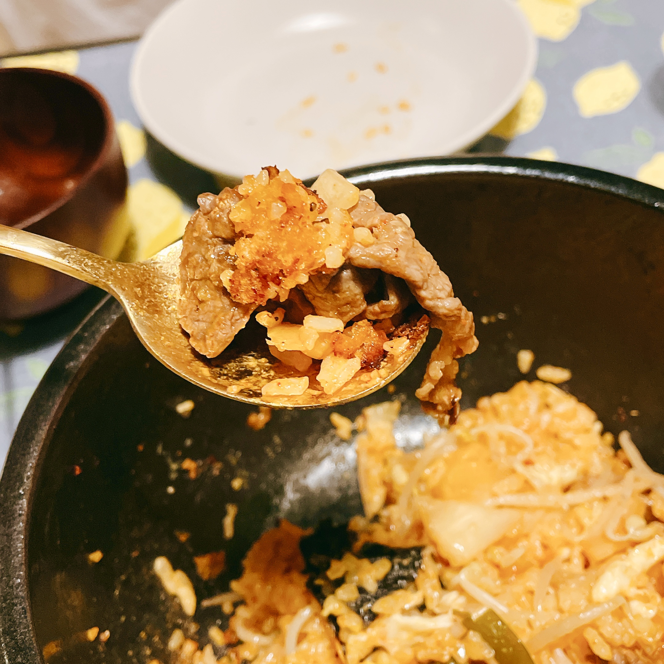 卡在鍋底的頑固鍋吧,最後可加入些許黃豆芽湯煮滾變身鍋巴湯,別有一番解膩滋味喔!