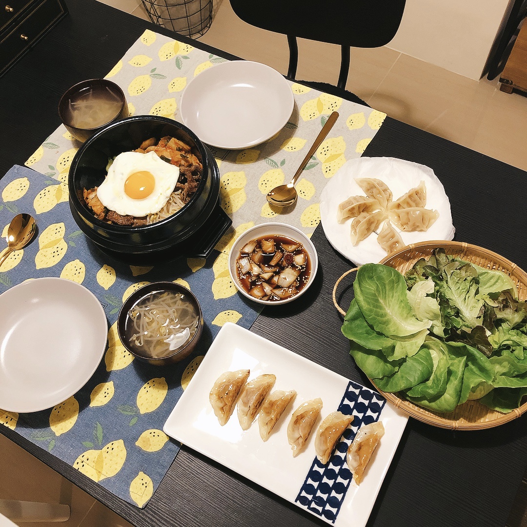 且不論拌飯的起源為何,但作為過年前夕的『清冰箱料理』沒有比石鍋拌飯更稱職的料理了!吃完這餐,米飛的冰箱空空如也,成功消滅殘餘的各種青菜、小菜和肉片,終於能夠安心陪半獸人先生回台南過年啦!