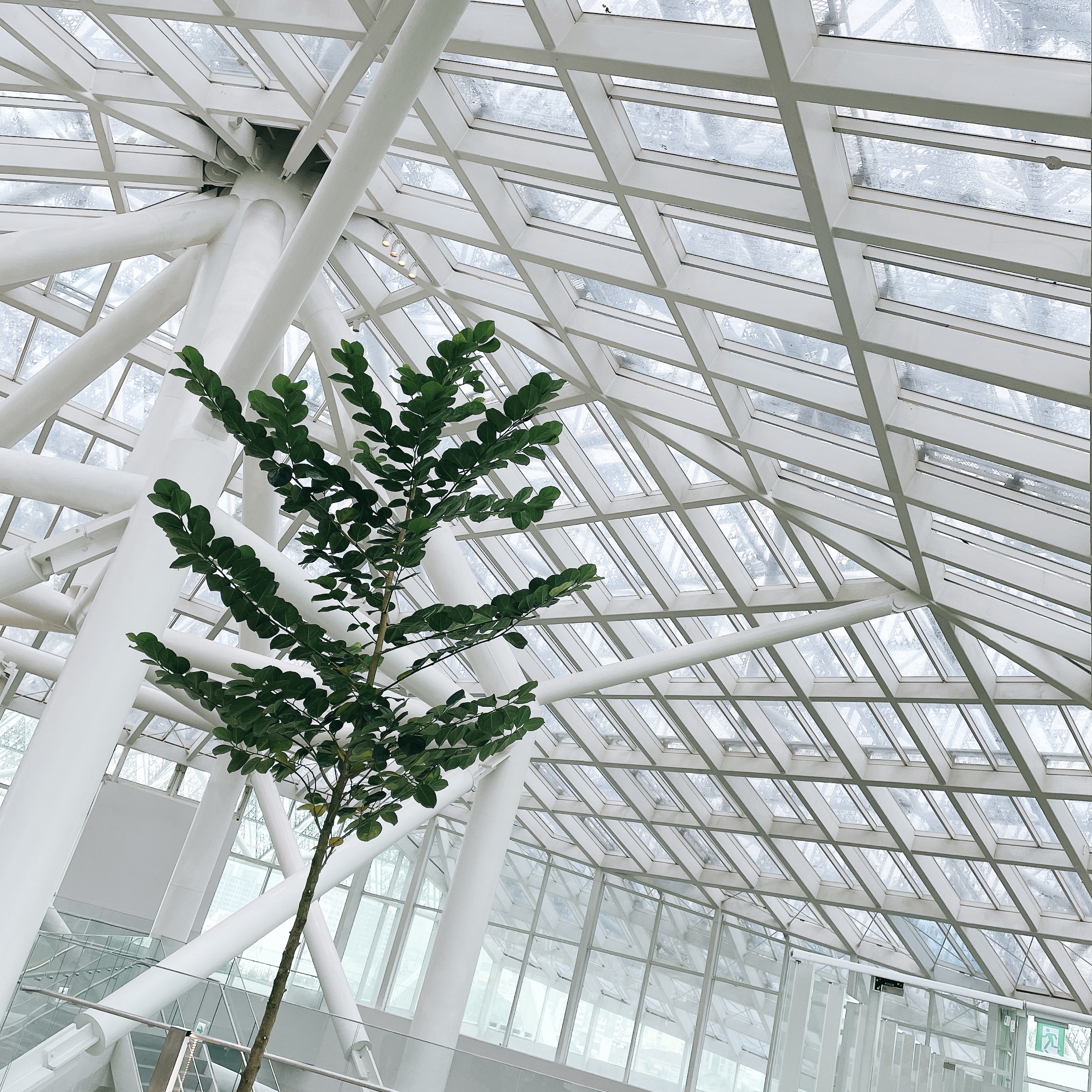 美術二館剔透的玻璃屋頂,恰好呼應【南美春室】玻璃工藝結合生活美學的循環經濟初衷。