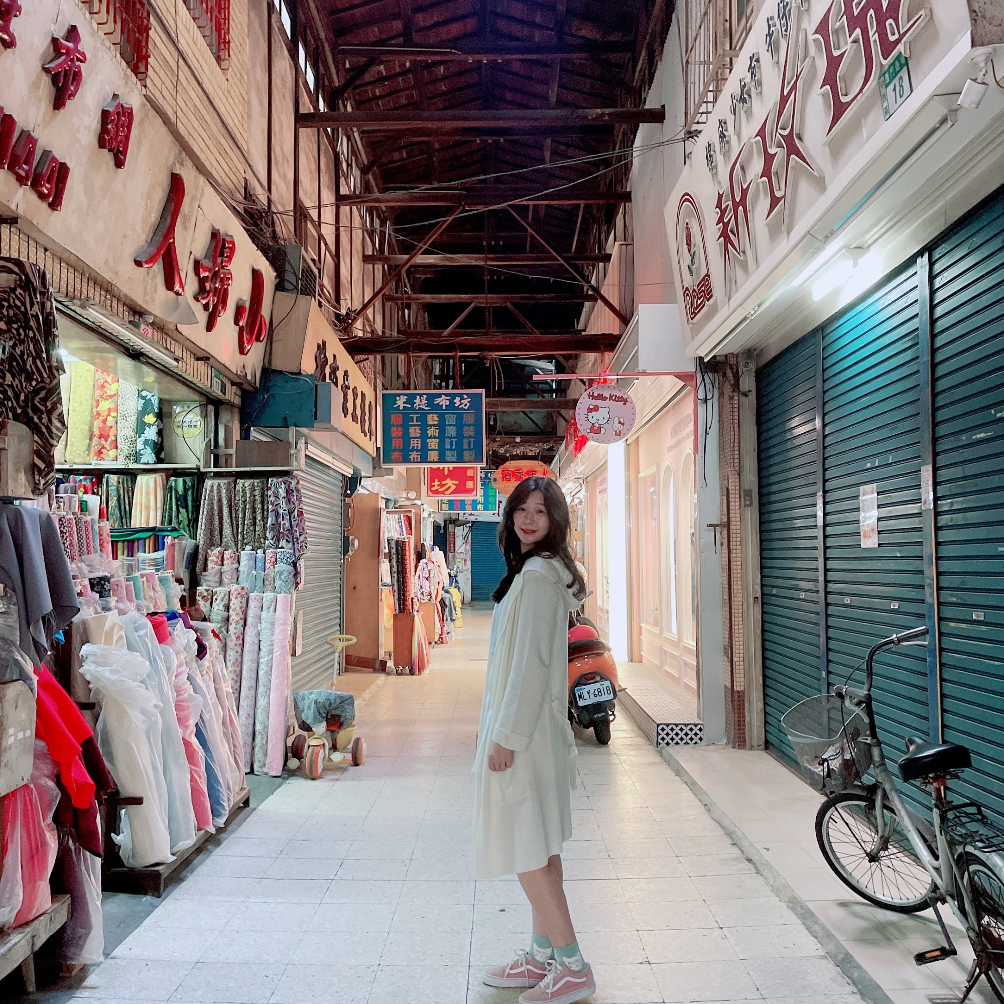 米飛穿越重新修復的西市場牌樓入口,彷彿穿越時空隧道來到俗稱的台南布市。