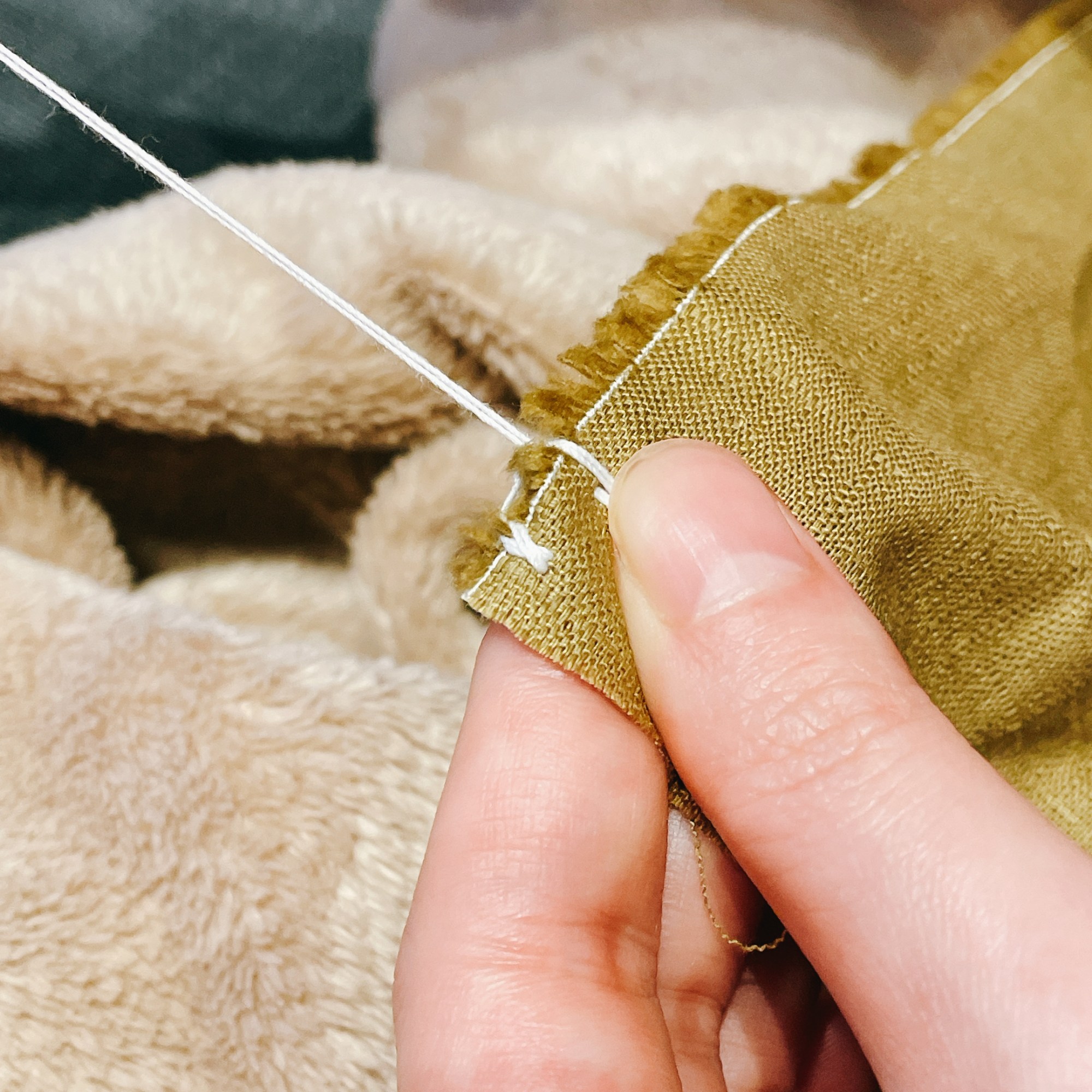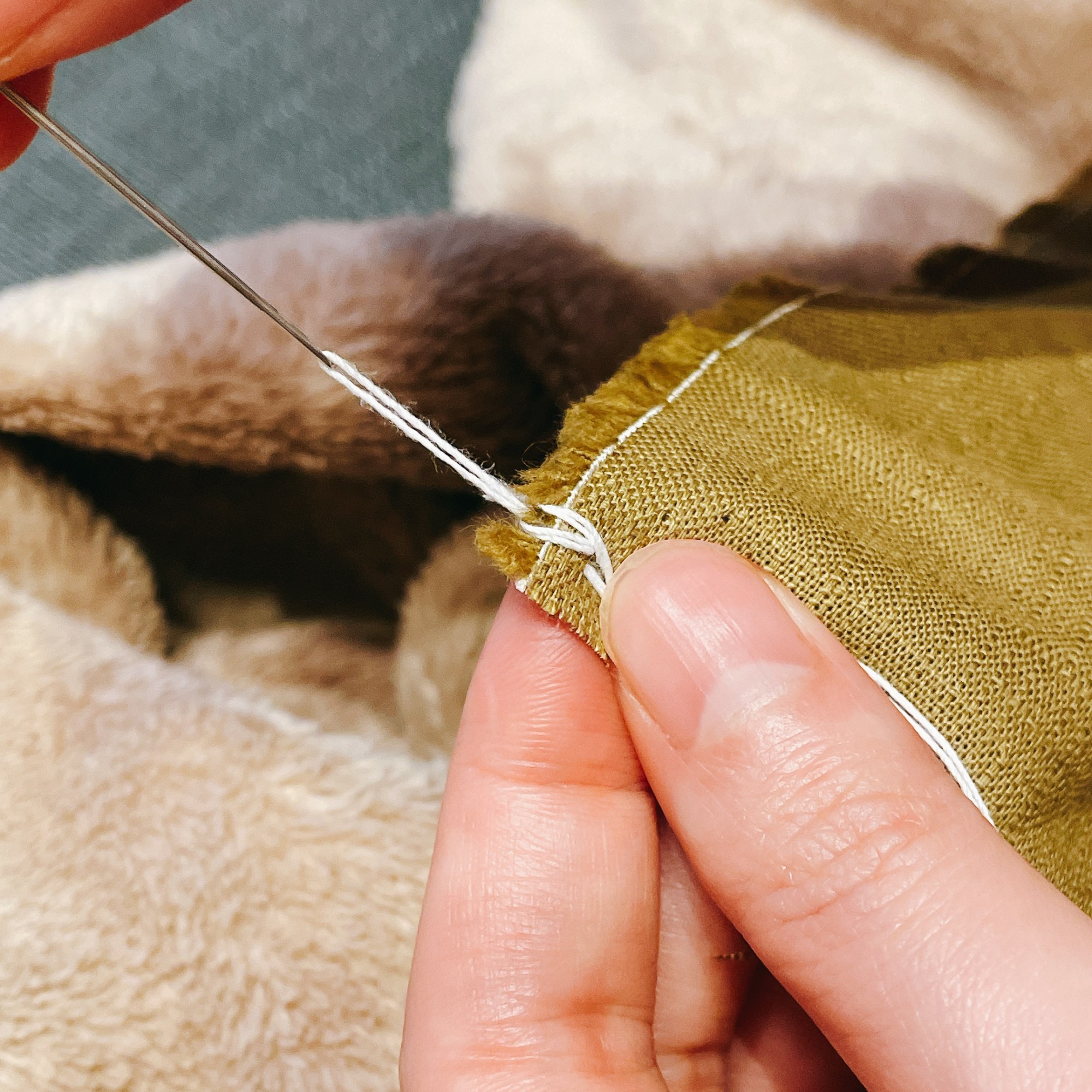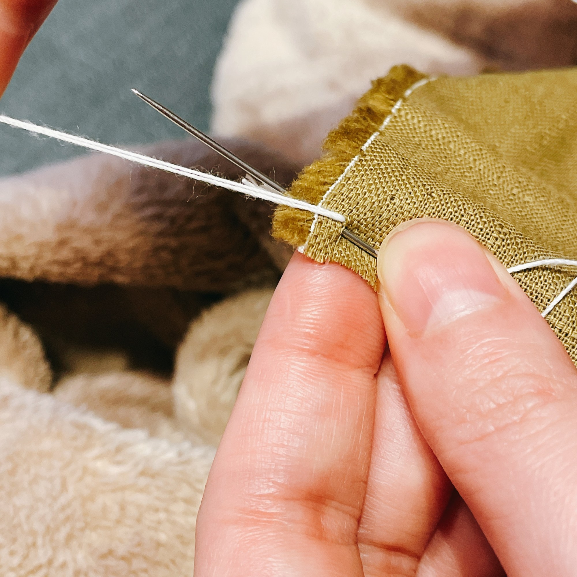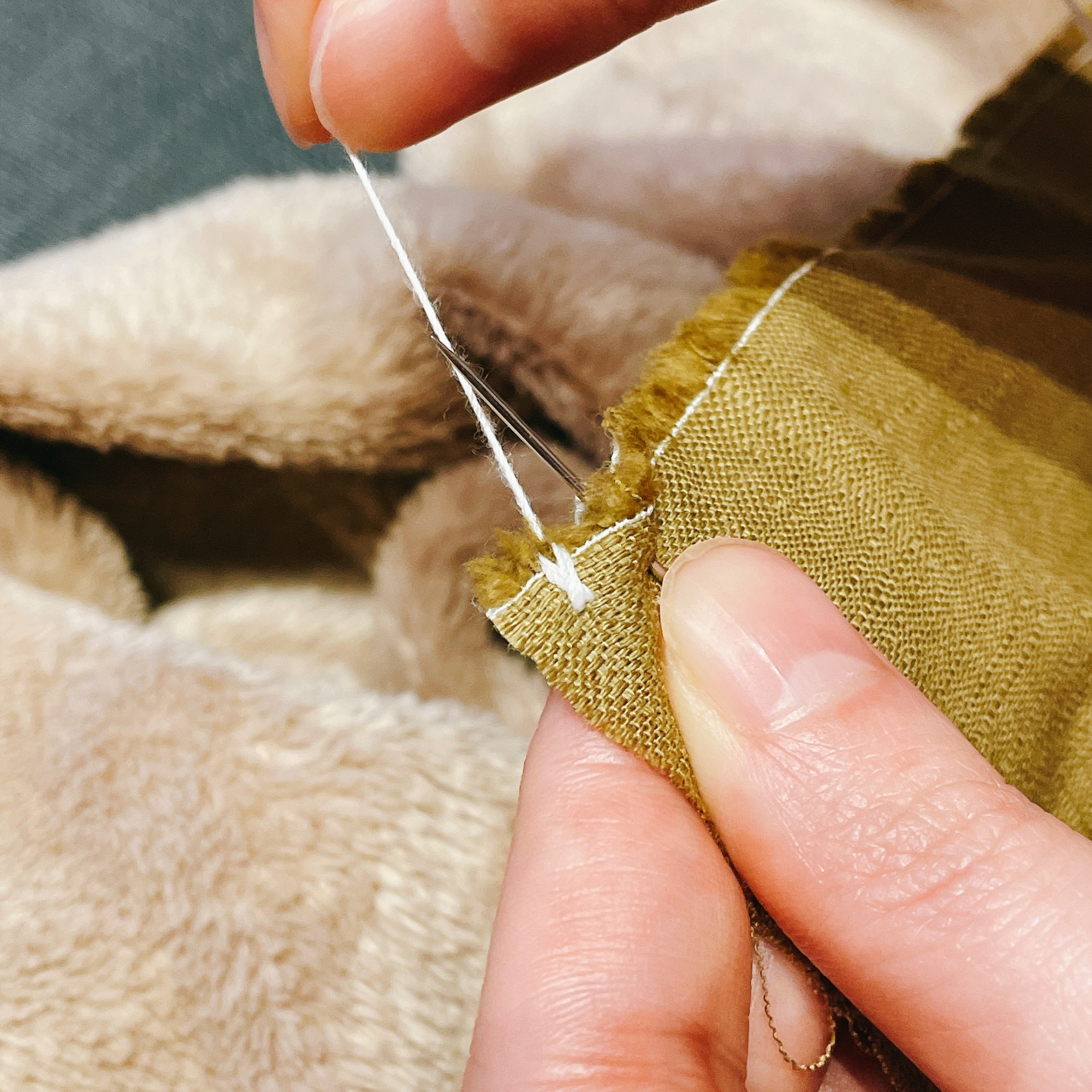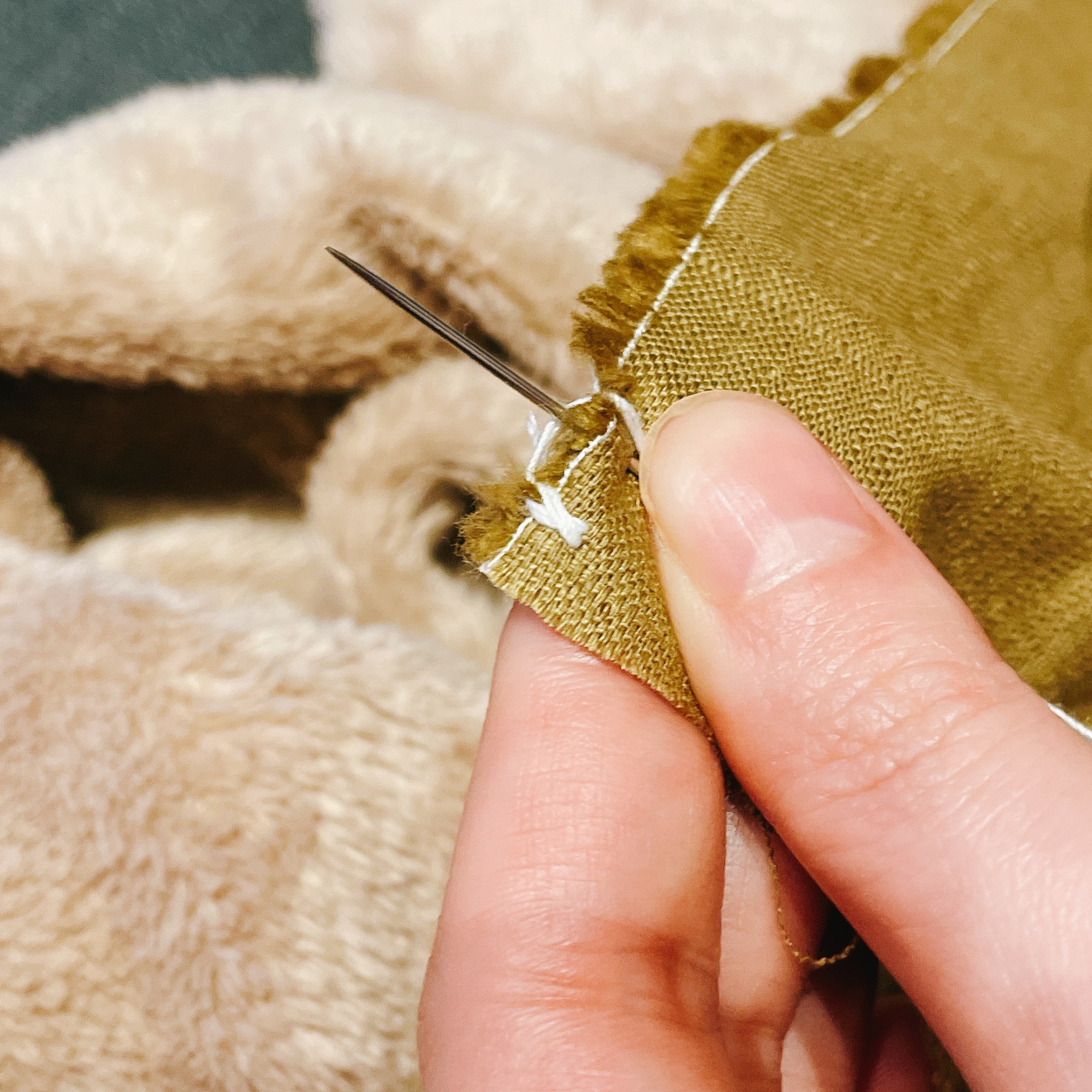 縫製的過程非常紓壓,不知不覺沈浸在「穿針引線」的慢動作,即使縫到後面因為低頭太久導致腰痠背痛也值得!