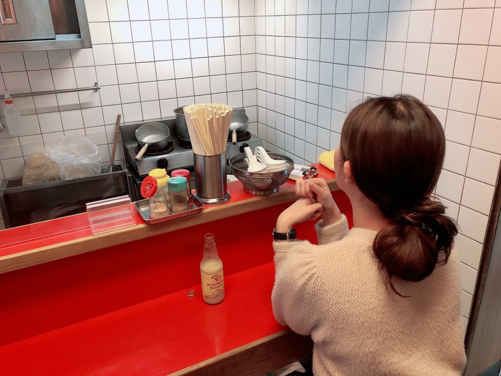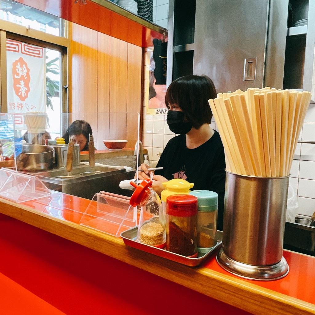 紅色、雷文、小吧台 一人廚房拉麵風情