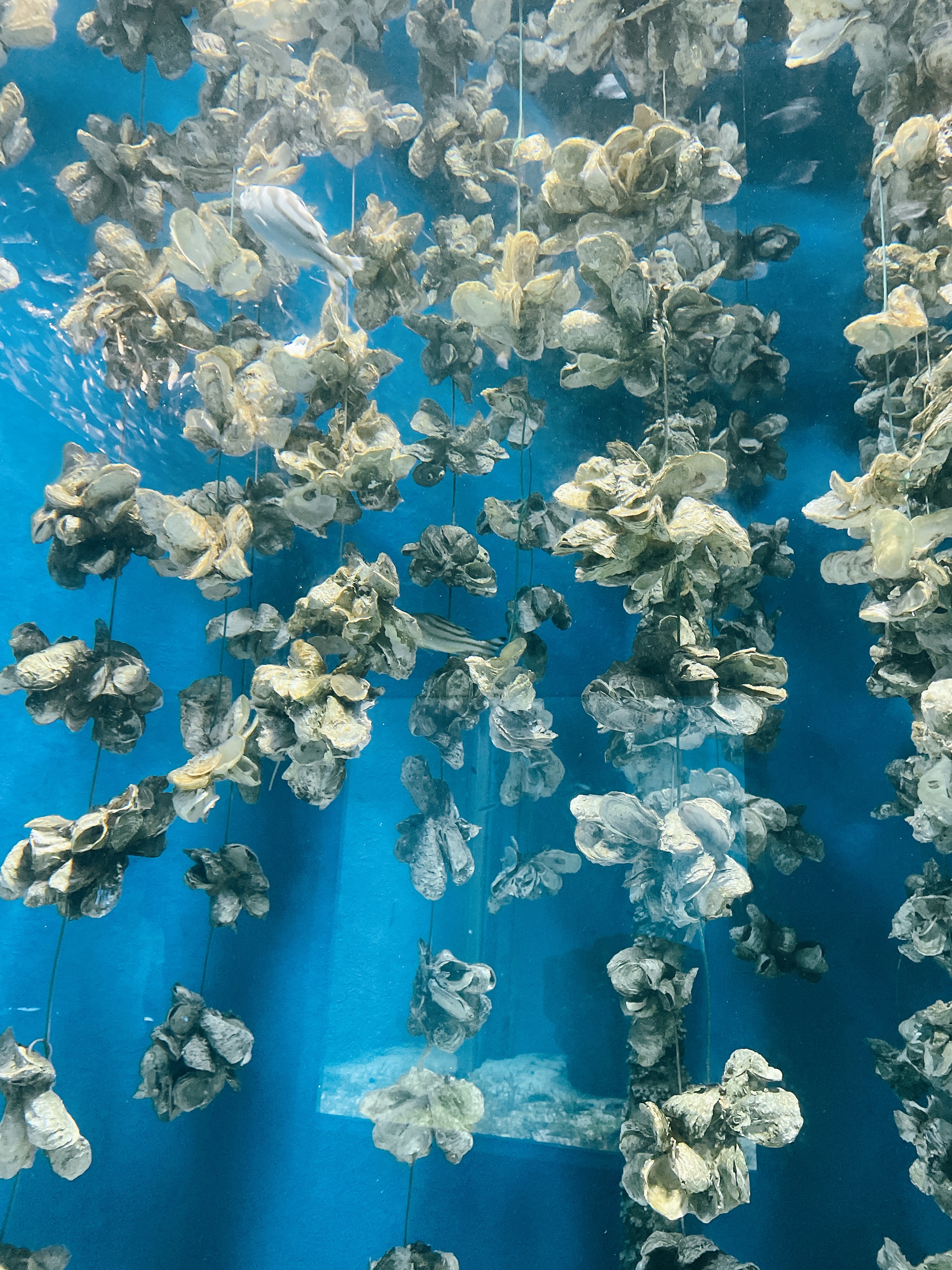 XPark的第一個展區就以人工養殖蚵仔串揭開水族館參觀序幕,很有台灣西南的海底風情。