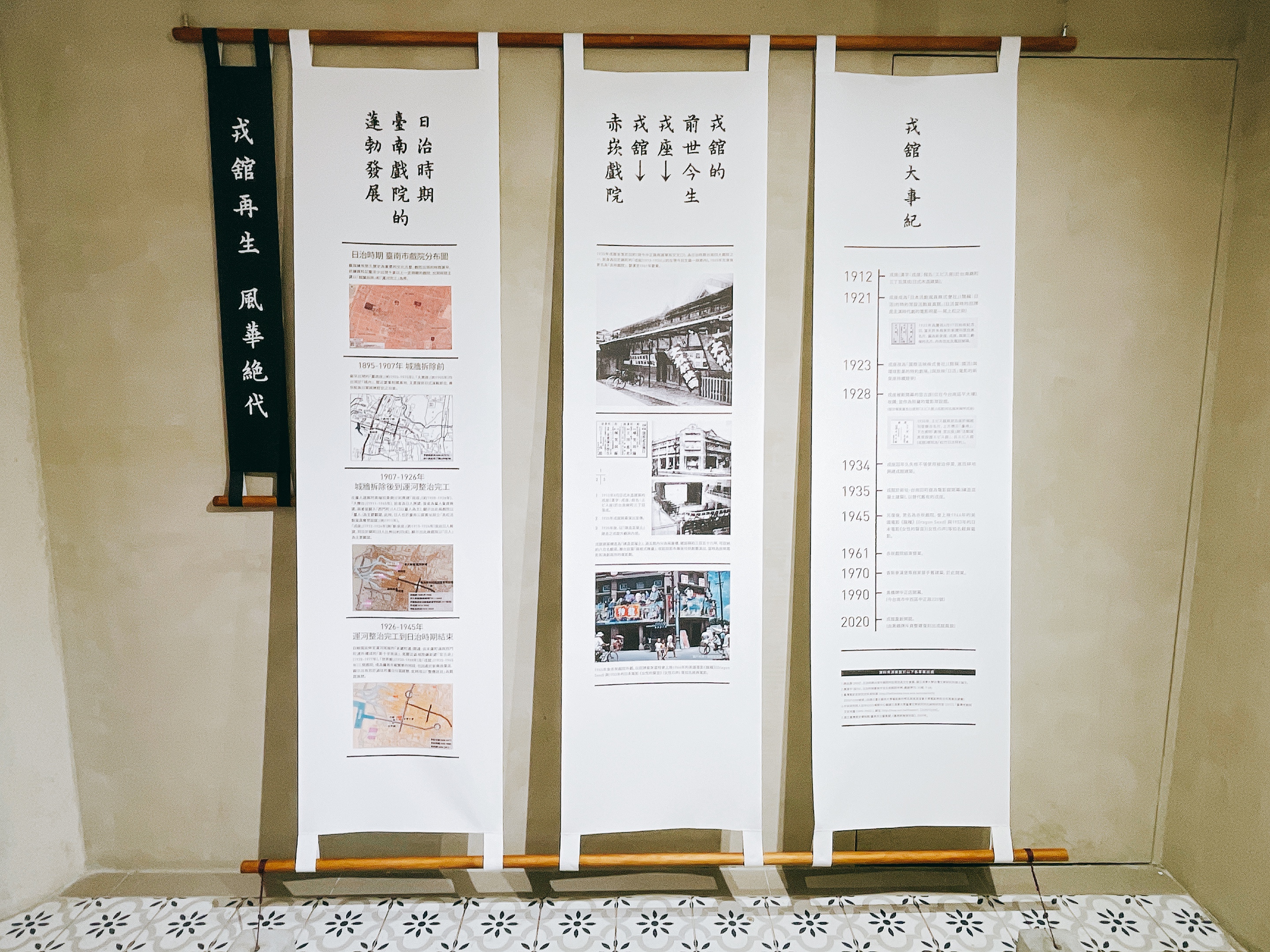 館內有一小區陳列建築修復前的舊照片、日本時代【戎館】宣傳廣告簡報以及簡略的戲院前世今生。