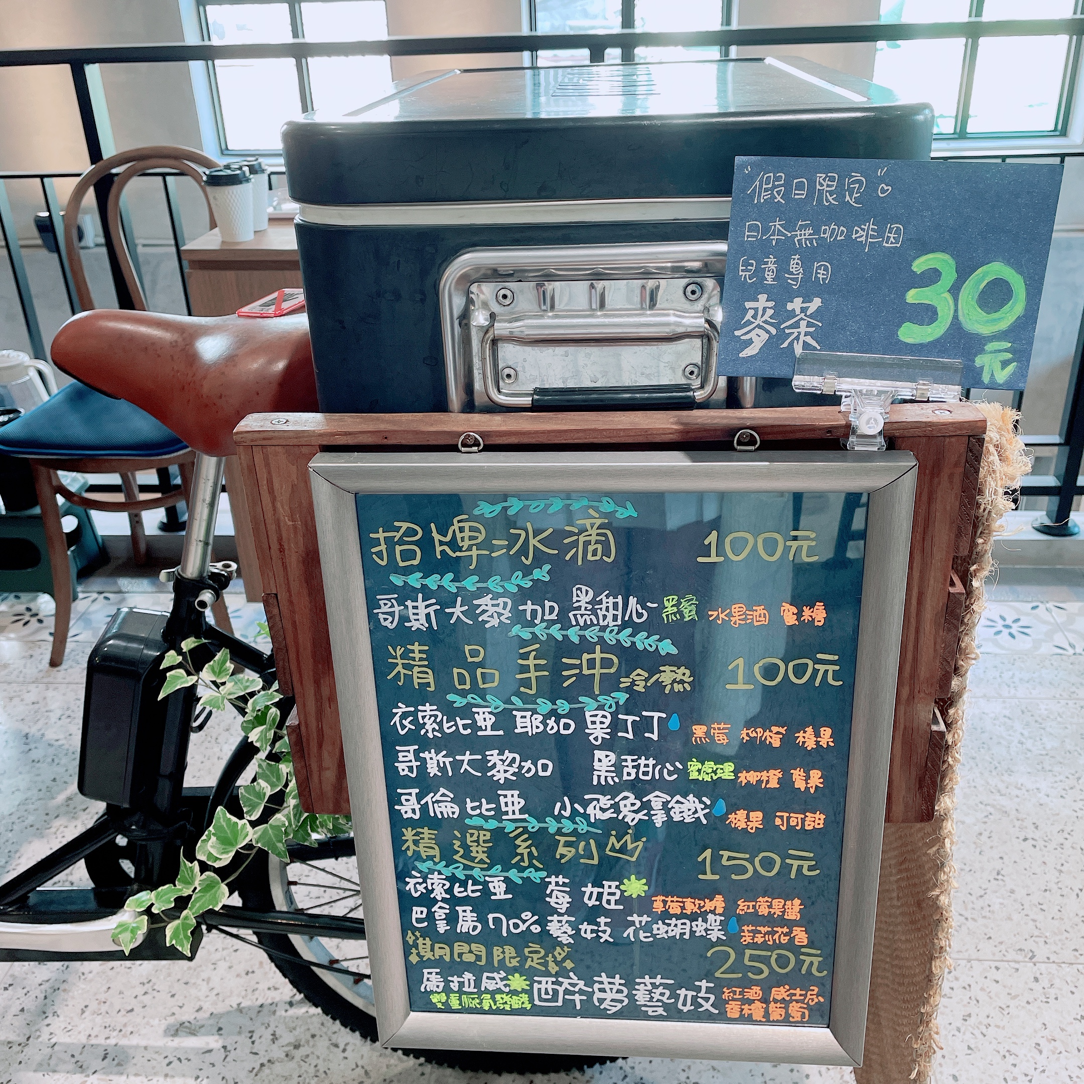 戎館內部唯一的飲品選擇【花韻】手沖咖啡,價格不貴,點餐後可自己找喜歡的位置喝飲料休息。