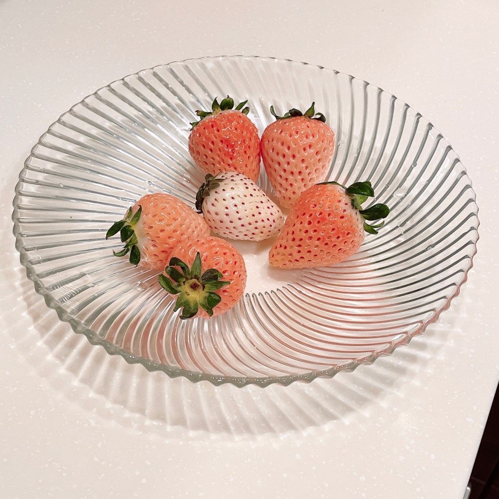 一顆顆像食物模型般漂亮的淡雪草莓,盒子內部使用泡泡紙材質固定防撞,就算一路手提搭車(台北—新竹)回到家依舊毫髮無傷。打開淡雪草莓和白草莓的封套,整個廚房都是草莓高雅的香氛氣息。