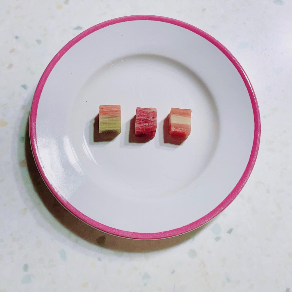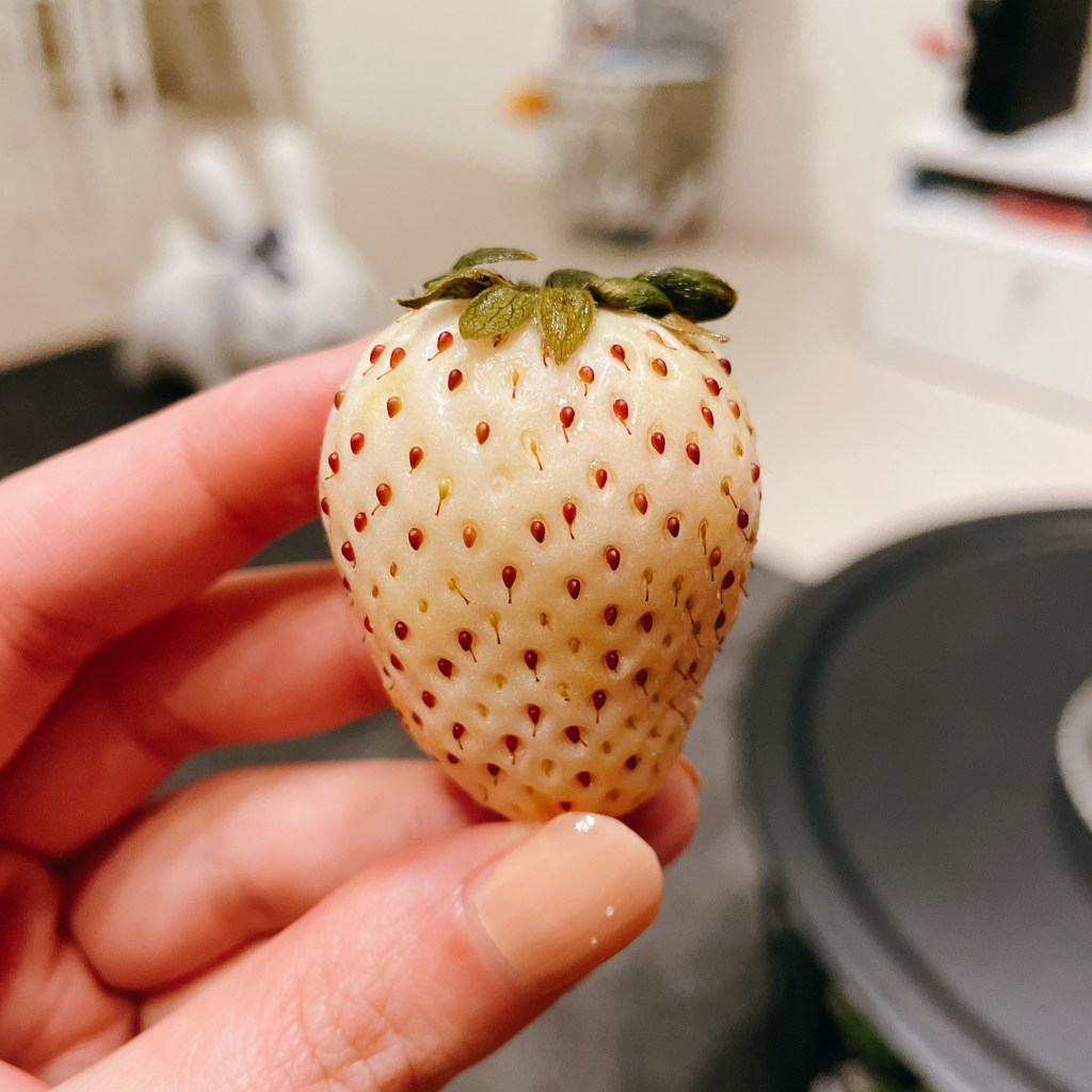 白草莓(NT129/顆)吃起來有淡淡奶香,有種被10顆草莓味覺糖入侵的草莓香氣。