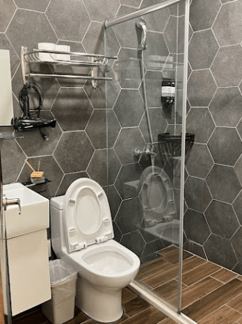 僅此兩間的尷尬衛浴由18位大人共享,因此從吃飽飯後就開始因洗澡和廁所不能分流造成的恐慌性「戰鬥澡」!