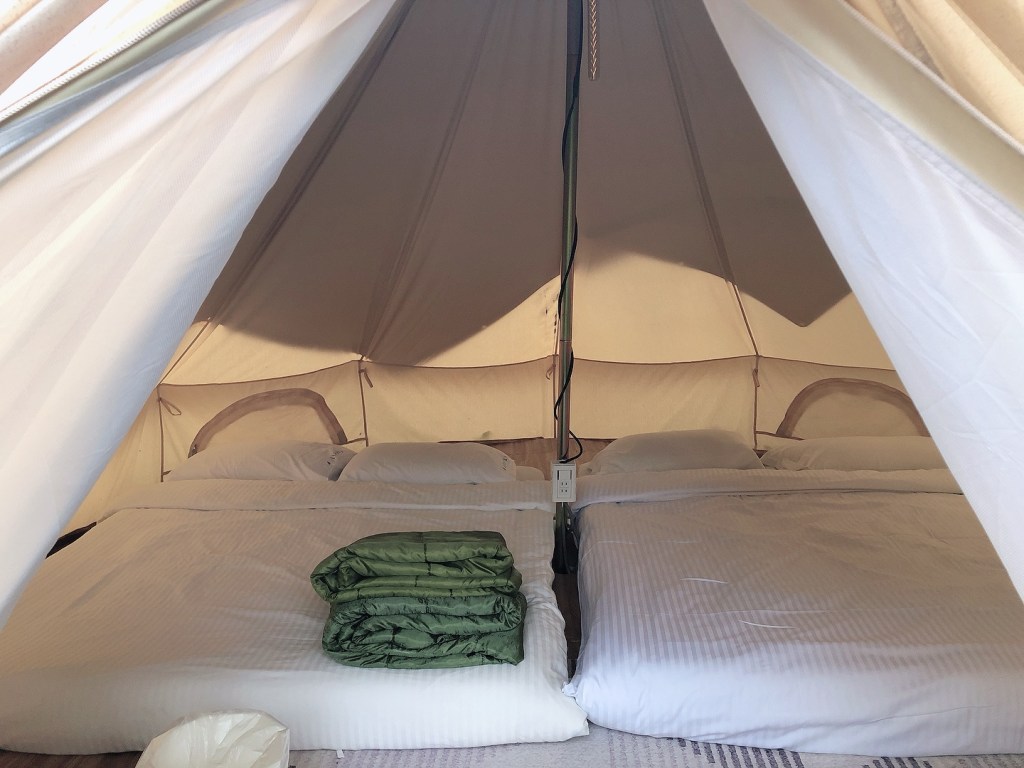 米飛與友人共18位,因此工作人員安排我們入住5個帳篷。原則上一個帳篷有2張雙人床可容納4位成人,但帳篷內部空間其實非常游刃有餘,若要一帳擠5個大人其實也能睡得很舒服。