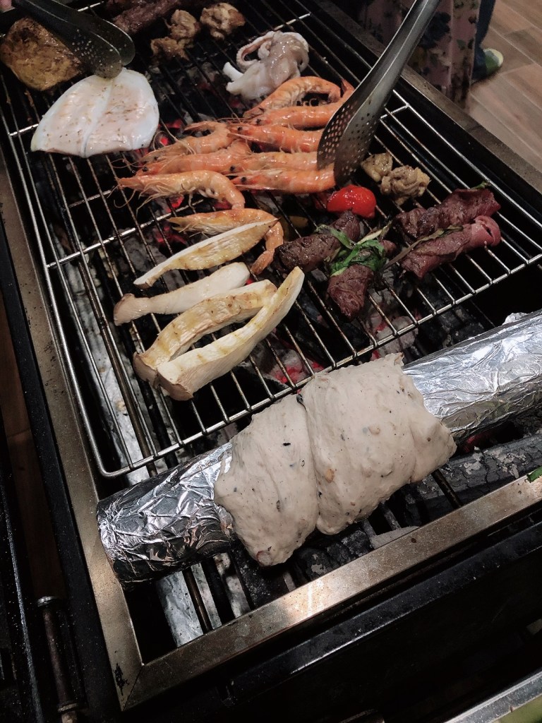 18人份的烤肉食材著實驚人,我們這團男女比例各佔一半,每個人超努力暴食吃超撐但還是無法烤完所有食材(最後剩一個完整托盤的肉品)。
