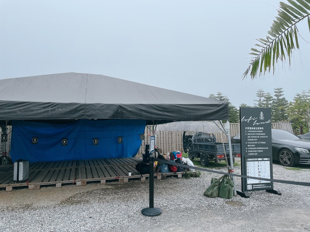 隨營地路標進入【自然圈農場】停車場,入場後現場工作人員會協助引導大家依照訂位人名將行李放在指定號碼區內的木板上,後續工作人員會用高爾夫球車將所有的行李運至營地。