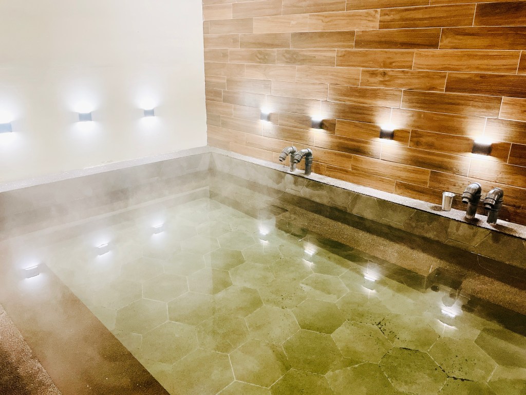 號稱擁有熱碳酸泉的大浴池看起來雖然美好,但其實水溫十分尷尬,體感溫度大約30度c左右,雖然沒有精密量測但確實不是會讓人感到幸福的溫度。