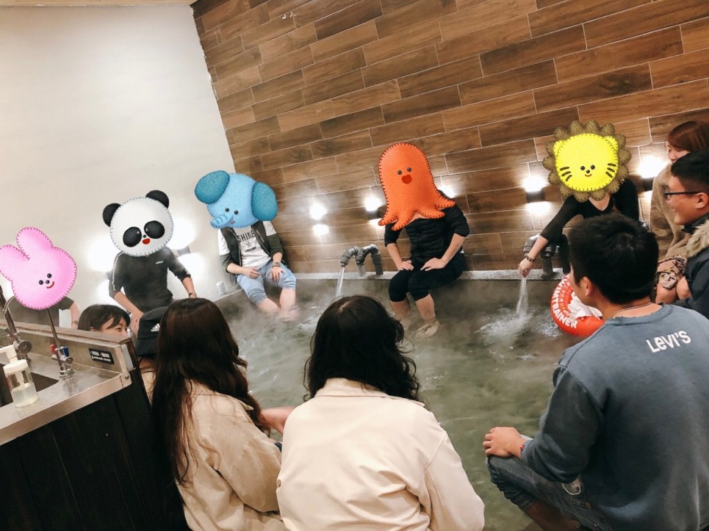 雖然這種尷尬水溫在晚上全身泡進去只會愈泡愈冷嘴唇發紫,但大家圍一圈泡腳喝酒邊玩『菜園、果園、動物園』團康遊戲倒是十分適合,氣氛超棒!