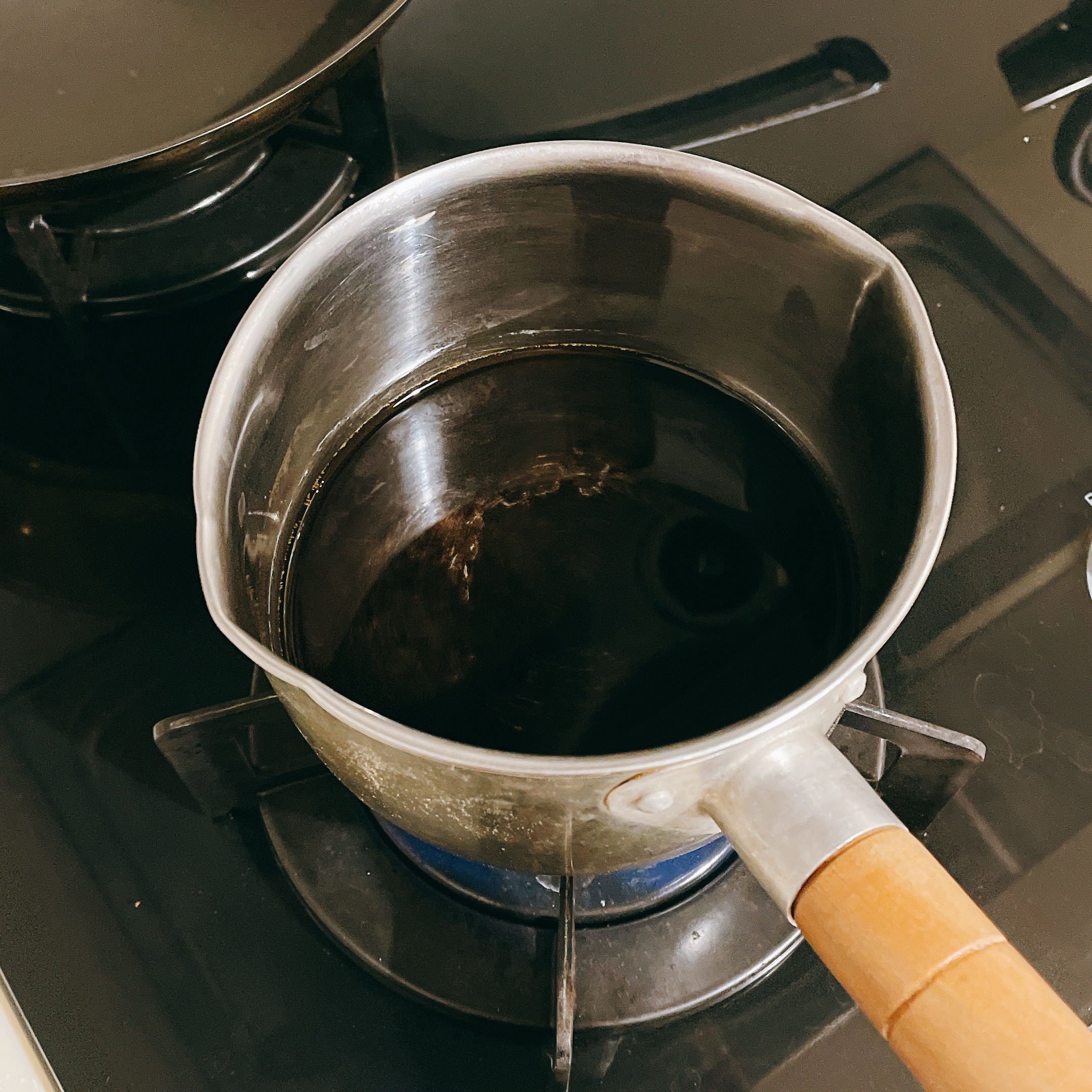 在牛奶鍋裡加入醬油(100ml)、水( 100ml)、味醂 (15ml)、米酒(50ml)、砂糖( 40g)、日高昆布(1小塊),煮滾至砂糖溶化,放涼備用