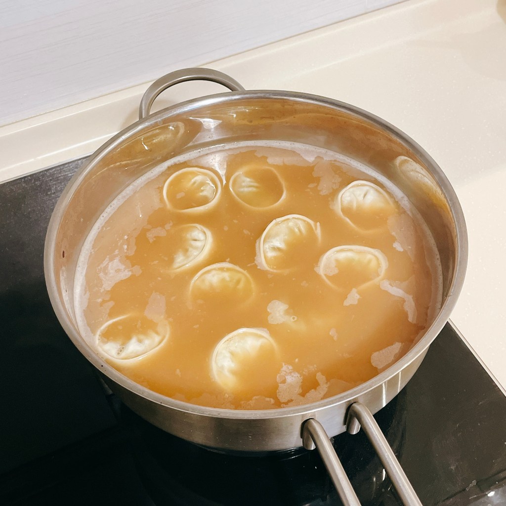 最後直接將韓國蔬菜水餃(10顆)放入湯裡煮5分鐘,美味的「朴帥牌」韓式餃子湯完成!