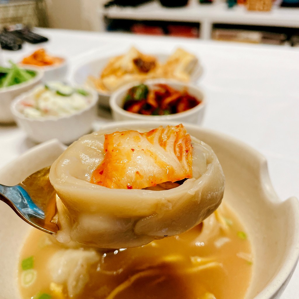 雖然市售的韓國餃子內餡不如自己包的好吃,但極致薄透的餃子皮依稀訴說著朝鮮王朝宮廷料理的古老而優雅的飲食習慣。