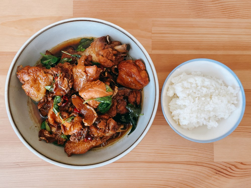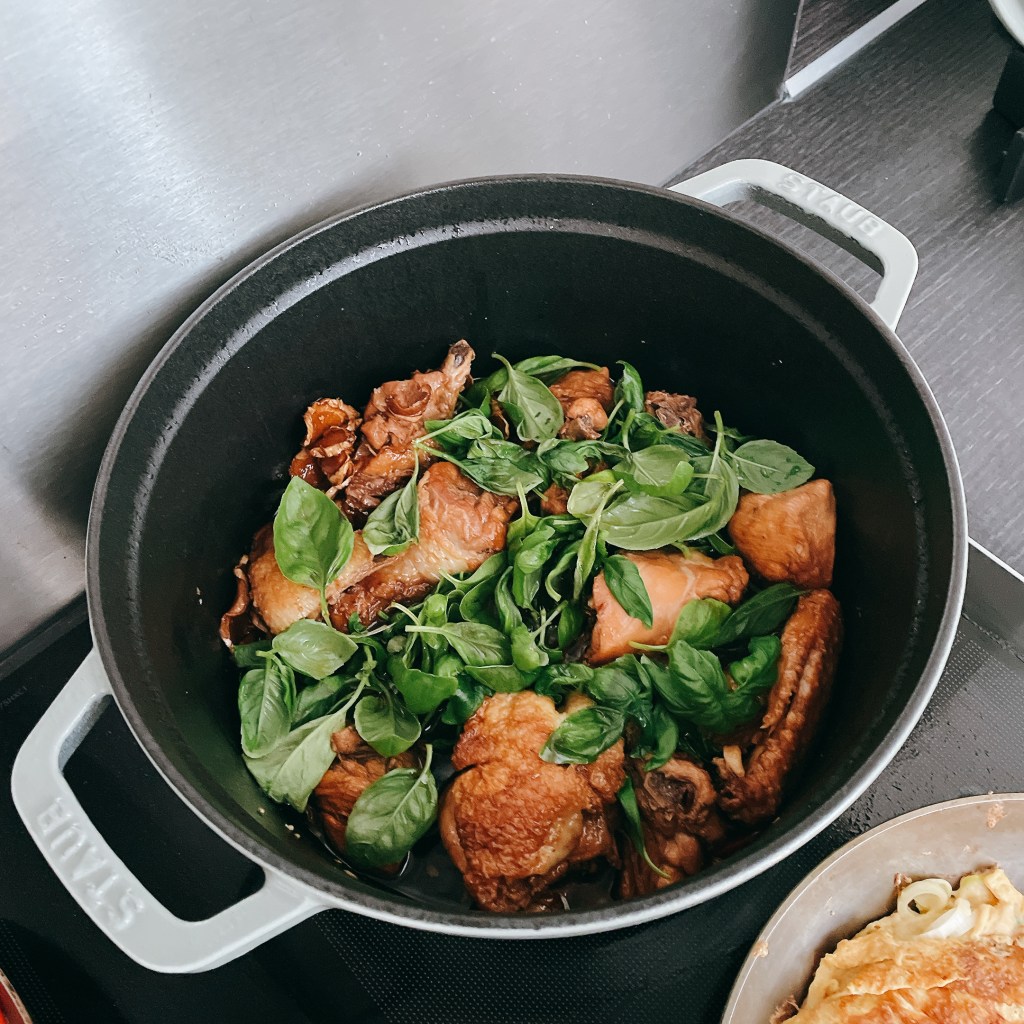 如果不方便買整隻雞,當然也可以選擇自己喜歡的部位。只要掌握黃金比例並搭配STAUB鑄鍋鍋,超簡單、一鍋到底讓雞肉快速燉入味又不會柴的『白飯小偷』三杯雞就完成啦!
