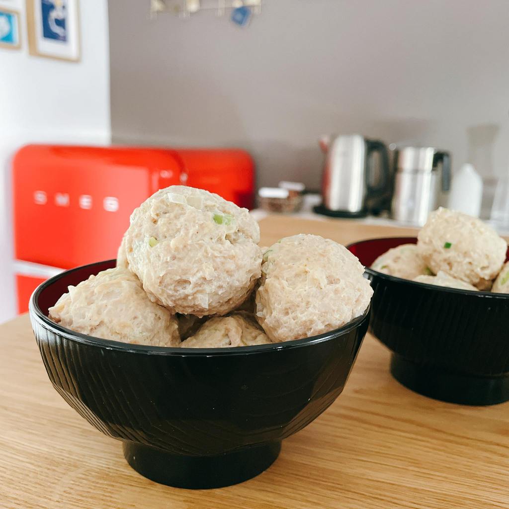 這種日式雞肉丸子吃起來特別軟嫩滑順,和貢丸或牛肉丸追求的Q彈「脆」感很不一樣。所以操作上比較簡單,不用一直冰水冰鎮或添加小蘇打粉那類的粉增加口感,很適合第一次做丸子的煮夫煮婦。