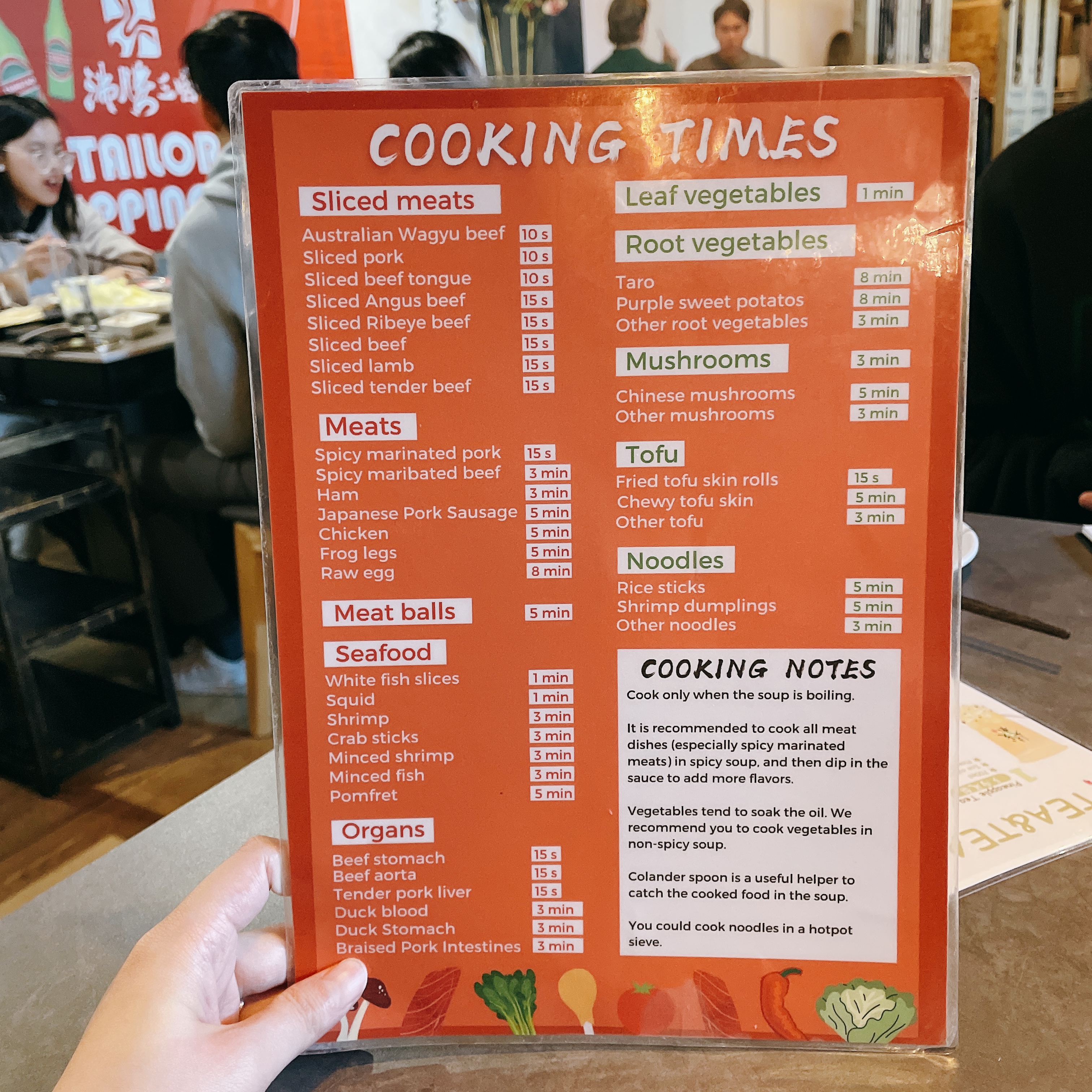 手冊裡面鉅細彌遺地介紹每一種食材該怎麼煮、煮多久,對火鍋完全一片空白的火鍋新手來說真的很友善。
