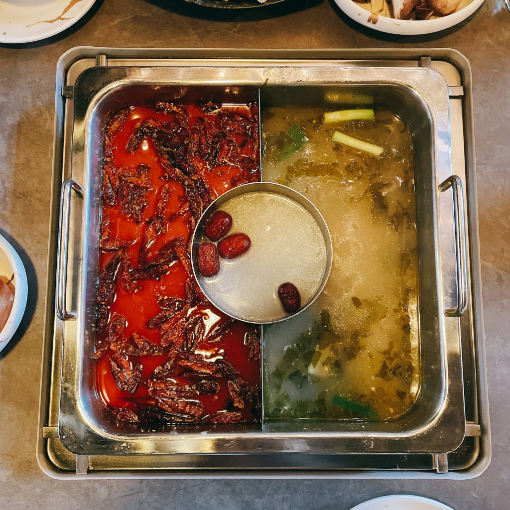 這個巧妙設計實在太貼心了!除了可以用那個空間涮蔬菜,也可以用這個大骨原湯調整麻辣湯/酸菜湯至自己喜歡的鹹度,這樣就能喝美味的火鍋湯了!