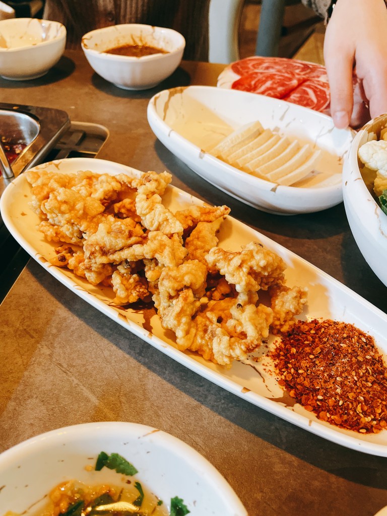 【沸騰三國】的麻辣鍋聞起來真的很香,涮什麼都好吃。而老罈酸菜鍋,雖然沒有太酸但也蠻好吃的。尤其加了鴨血和凍豆腐入鍋後,吃起來有種莫名的熟悉感!是台灣小吃店常出現的酸菜豬血湯那種溫暖而療癒的味道。