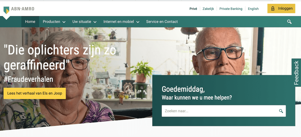 接下來可按照銀行開戶手冊,前往abnamro.nl銀行官網 點選黃色按鈕“login” 網路銀行