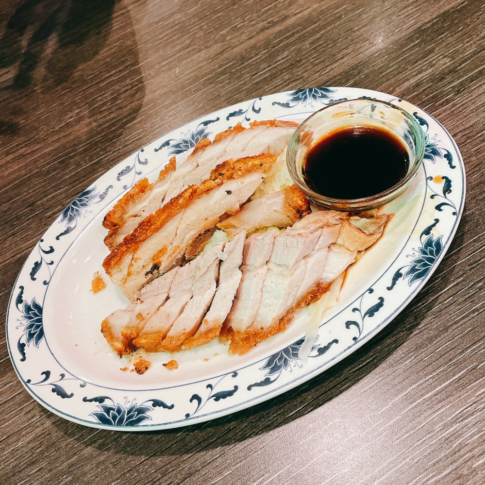 這道菜就是台灣燒臘便當店俗稱的「脆皮叉燒」,也是我最喜歡的一道菜。吃起來很像烤乳豬,酥脆的豬皮、恰到好處的油脂還有鮮嫩的肉,下層還有白菜解膩。把脆皮火腩鋪在白飯上、再均勻淋上特製醬汁,吃得像專家一樣,品嚐豬五花的美味極致!