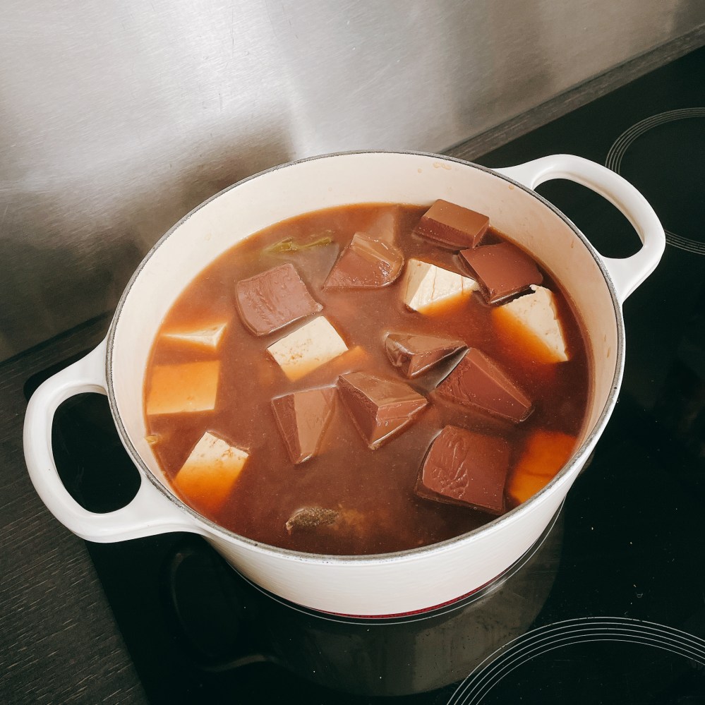 平常我會事先做好一鍋滷牛腱/滷豬肋排用剩下的滷汁來燉鴨血/豆腐味道更濃郁,類似滷水拼盤的概念取代豆腐料理包,推薦煮夫煮婦可試試