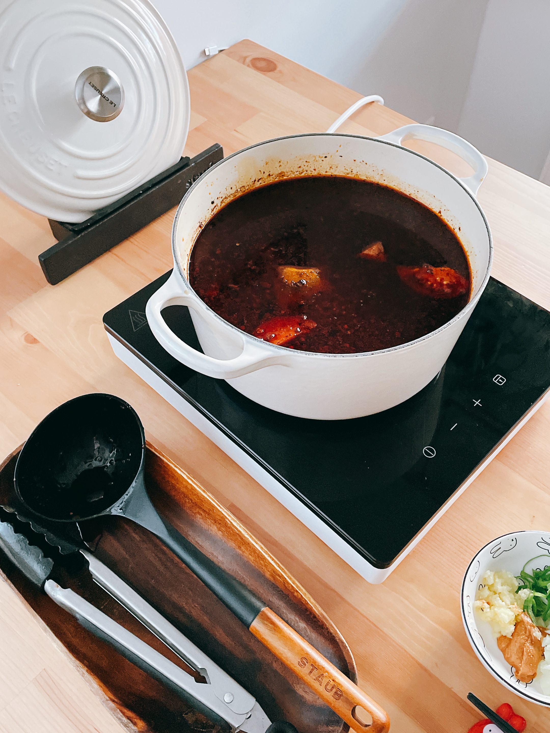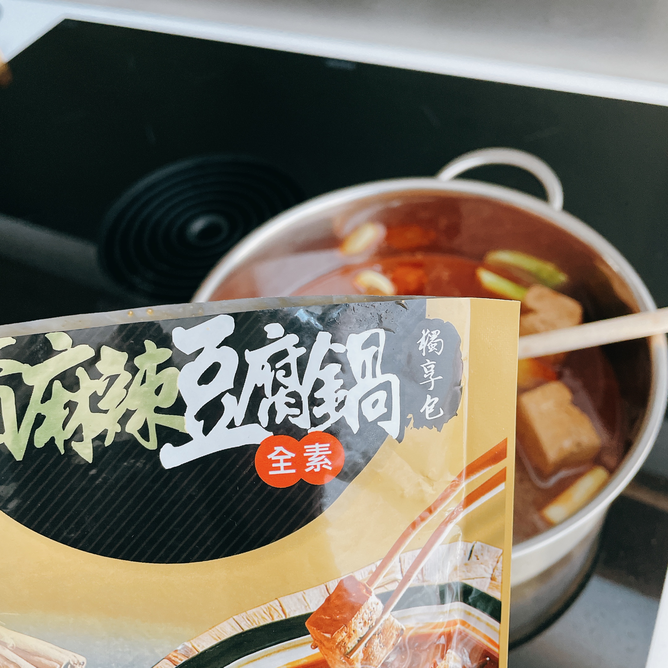 撕開老四川清油麻辣湯底和天香麻辣豆腐料理包,鍋子滾著豔紅湯澤、噗嚕噗嚕家裡充滿濃郁的椒麻香氣,最後一定要丟入新鮮足打麵做結尾。