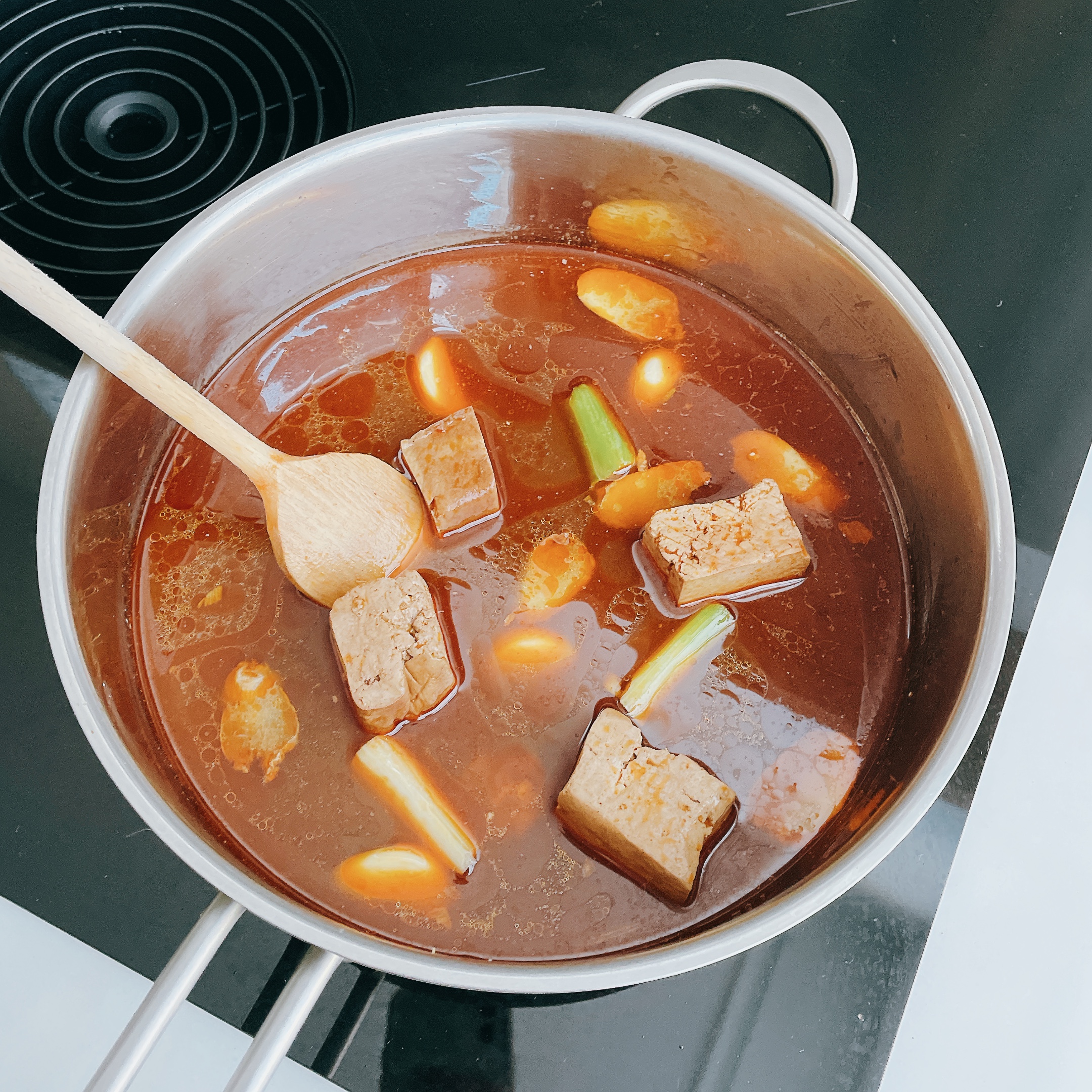 #步驟2 爆香加滷包、豆腐料理包燉煮