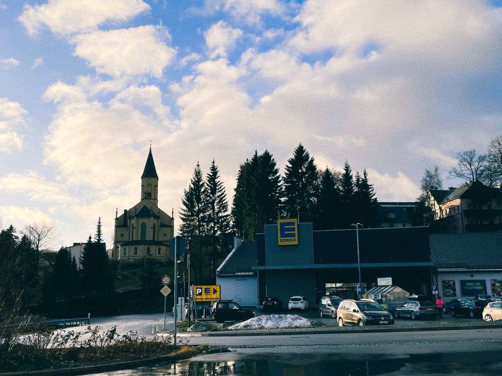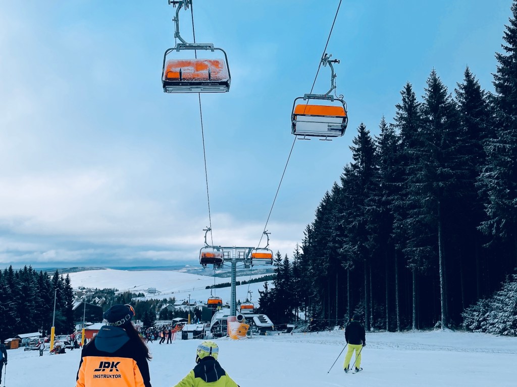 如果不開車,靠大眾交通前往雪場都需要半天的時間。我們早上7點天還沒亮就從柏林搭高鐵> 萊比錫轉乘火車> 最後在Chemnitz 搭兩段公車上山直奔雪場,到雪場小鎮時已經下午2點。
