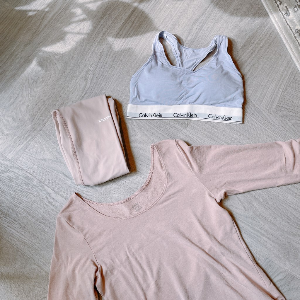 可選擇一般薄長袖/發熱衣作為內搭;如果你和我一樣怕熱,建議可穿UNIQLO AIRism短袖上衣。下半身則可穿運動用的legging或是瑜伽褲,除了多一層阻隔濕氣,穿護膝時也比較舒服、不會直接磨肉。
