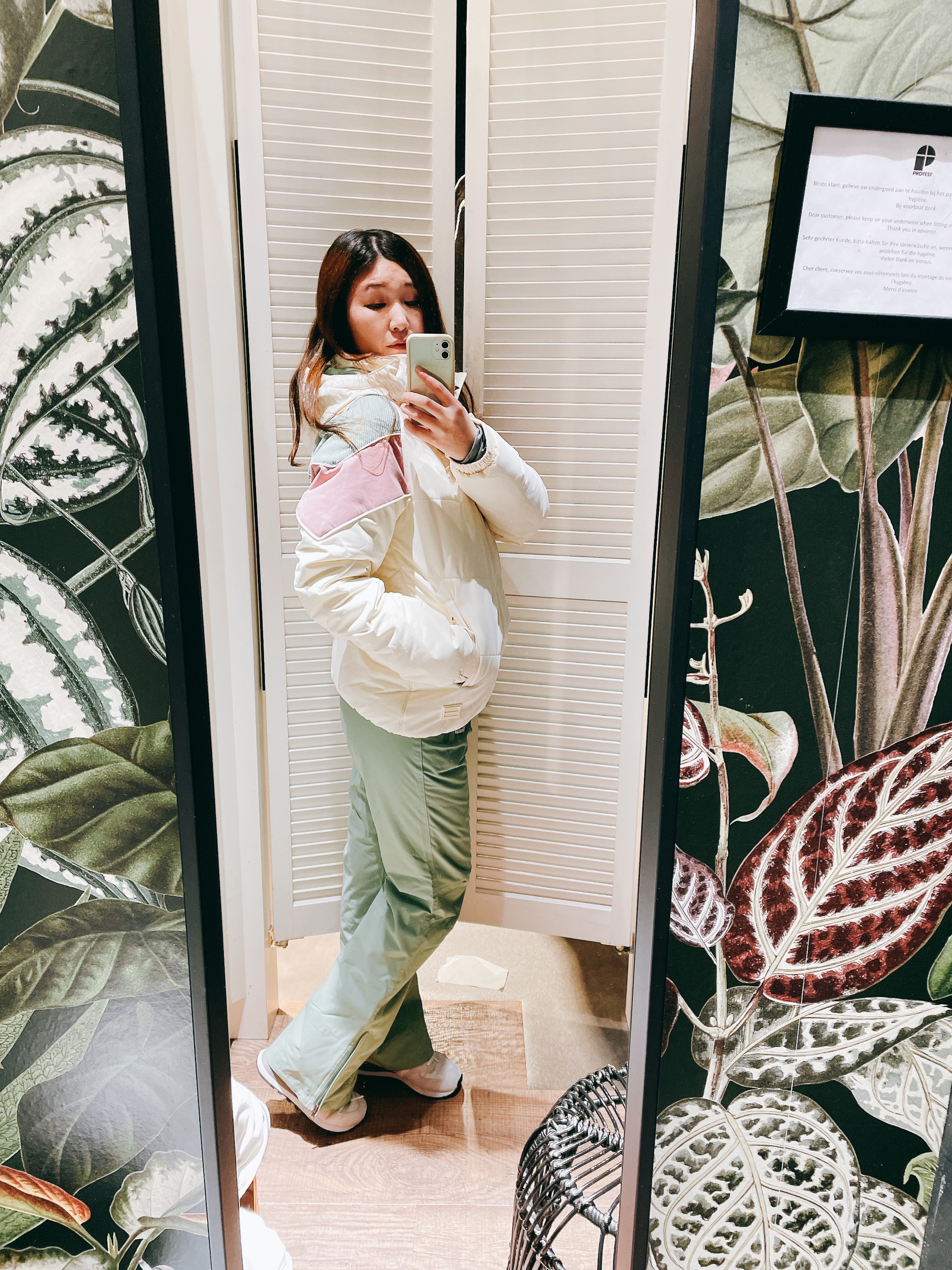 雪衣和雪褲一定要合身,太緊不好活動、太鬆很容易進雪。以身高160公分的女生(me)來說,PROTEST雪衣和雪褲挑選歐規尺寸S,無論褲長或寬鬆程度都很剛好。