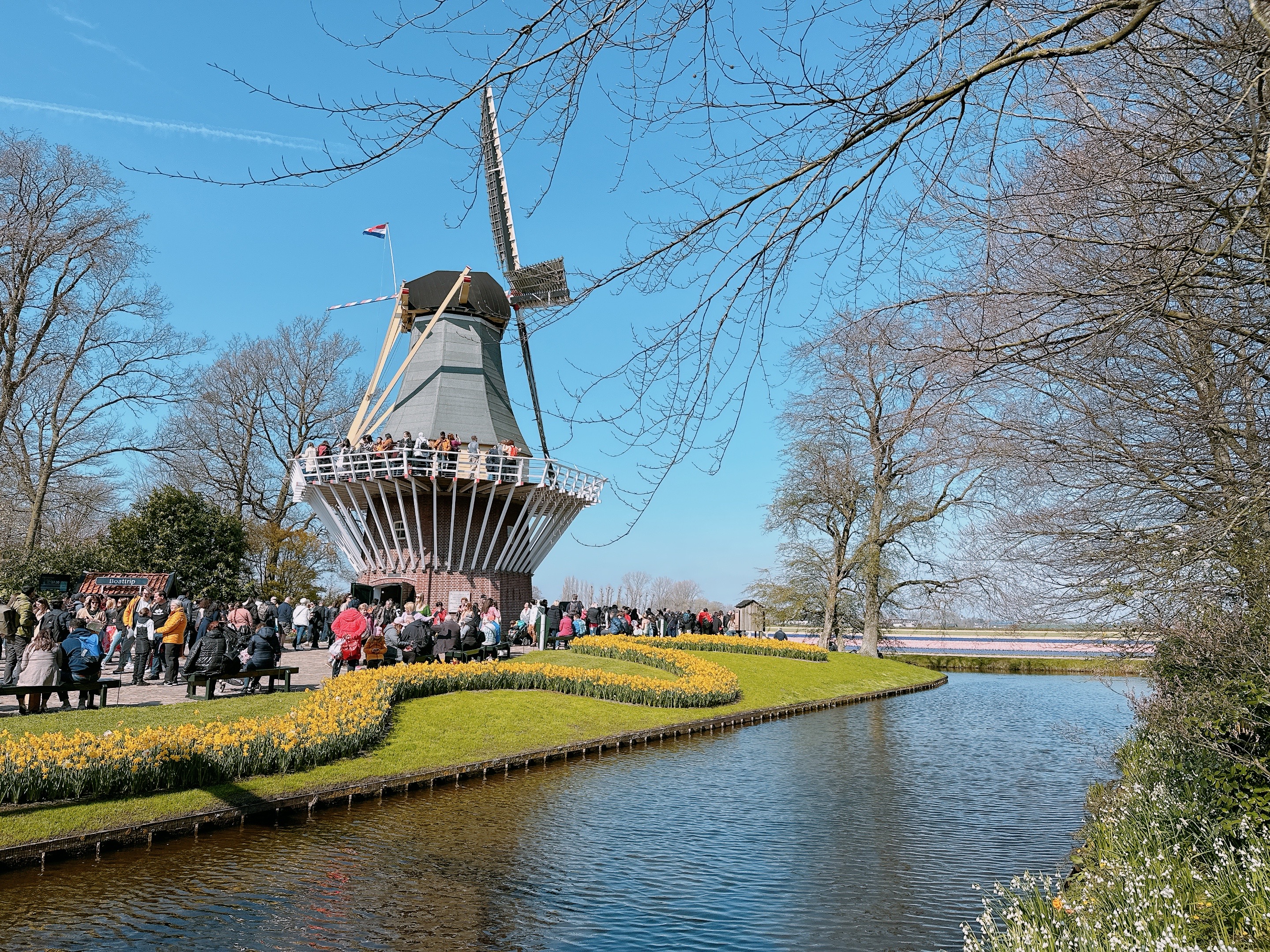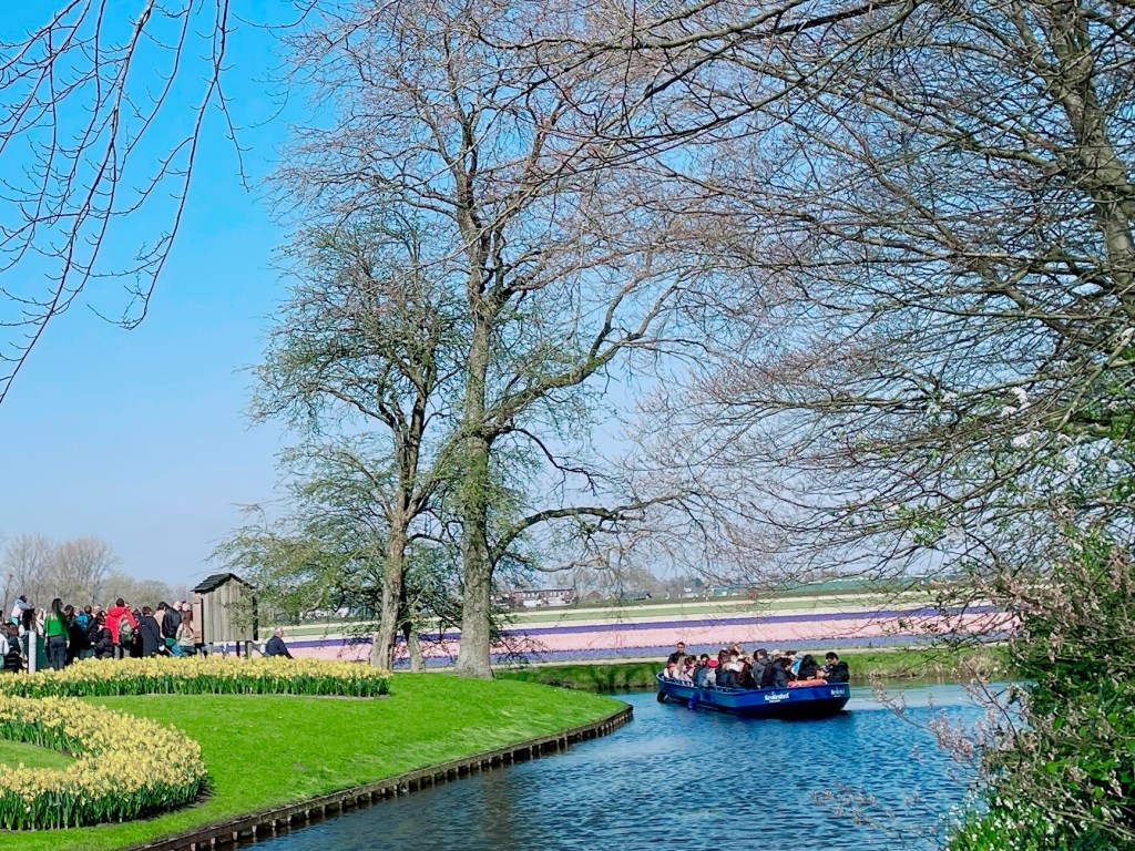 來到以運河著名的荷蘭,當然別錯過搭Whisper Boat (電動遊船)觀光。相較吵雜喧囂的陸地散步賞花,我覺得在水道上看花反而更接近花海,可以靜謐享受美麗的花園,還附贈語音導覽,應該是最舒服的賞花路徑。